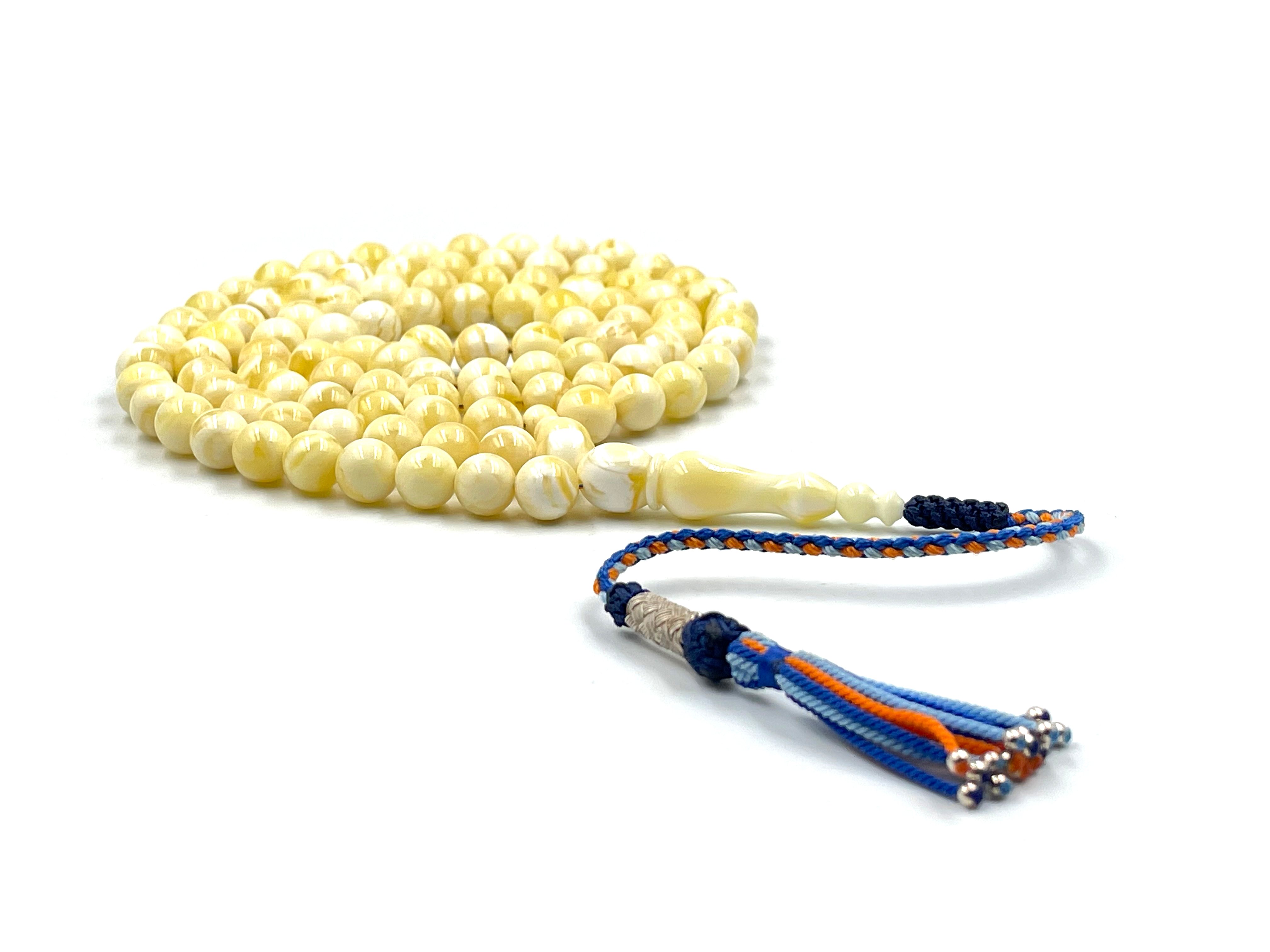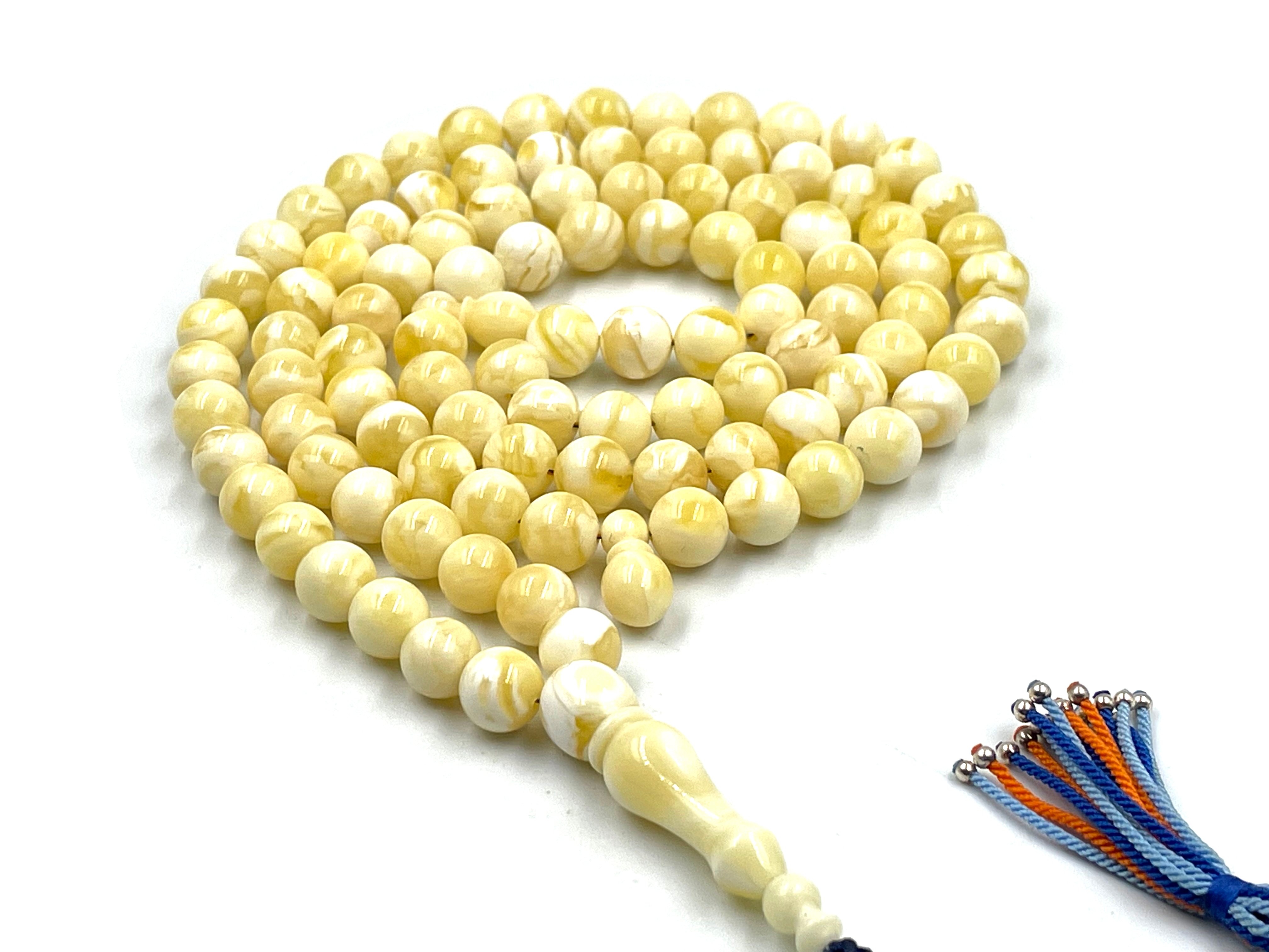 سبحة كهرمان تربل سوبر مبرقع جبس سيراميكيعدد الخرز 99الوزن التقريبي 32gالمقاس التقريبي 8 mm متفاوت ( نواعم )
