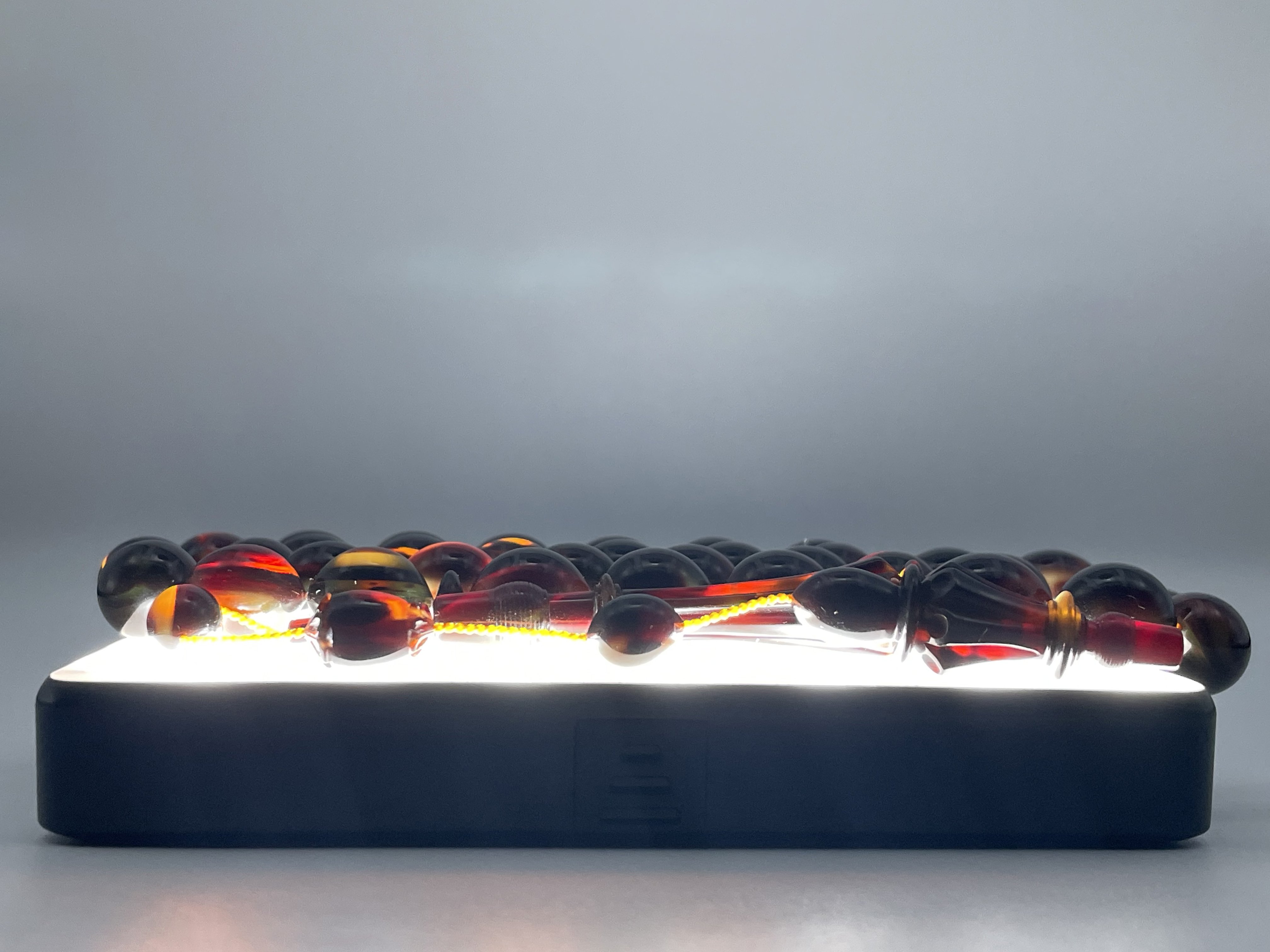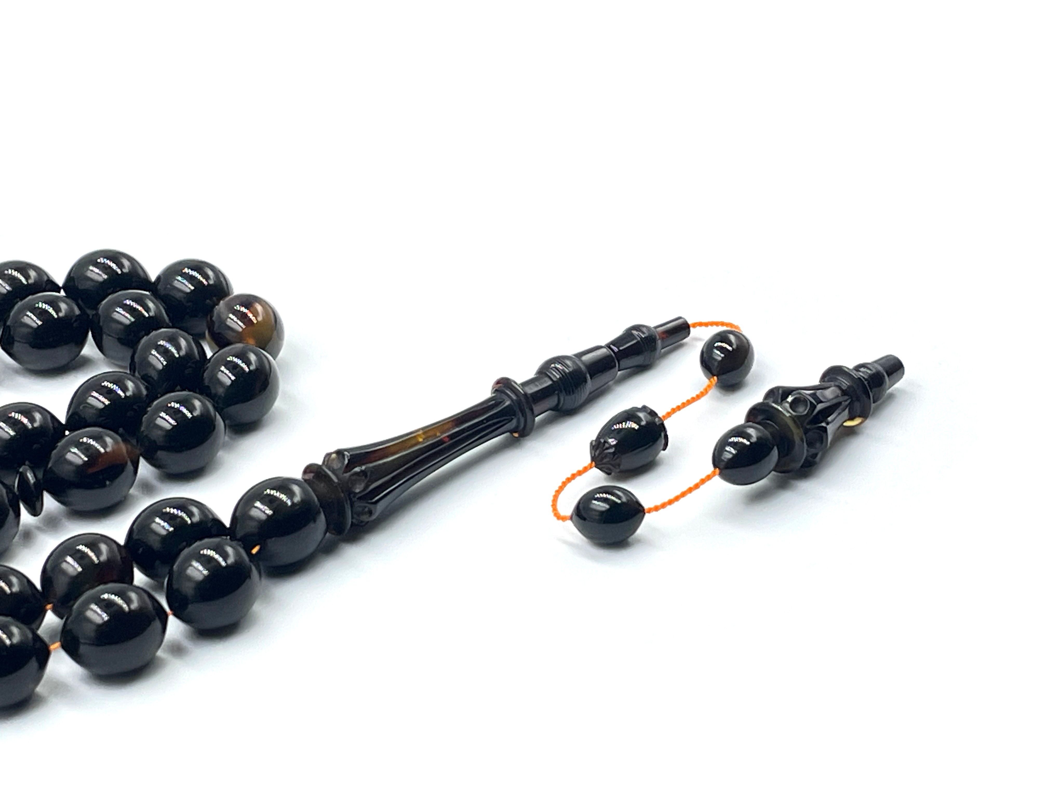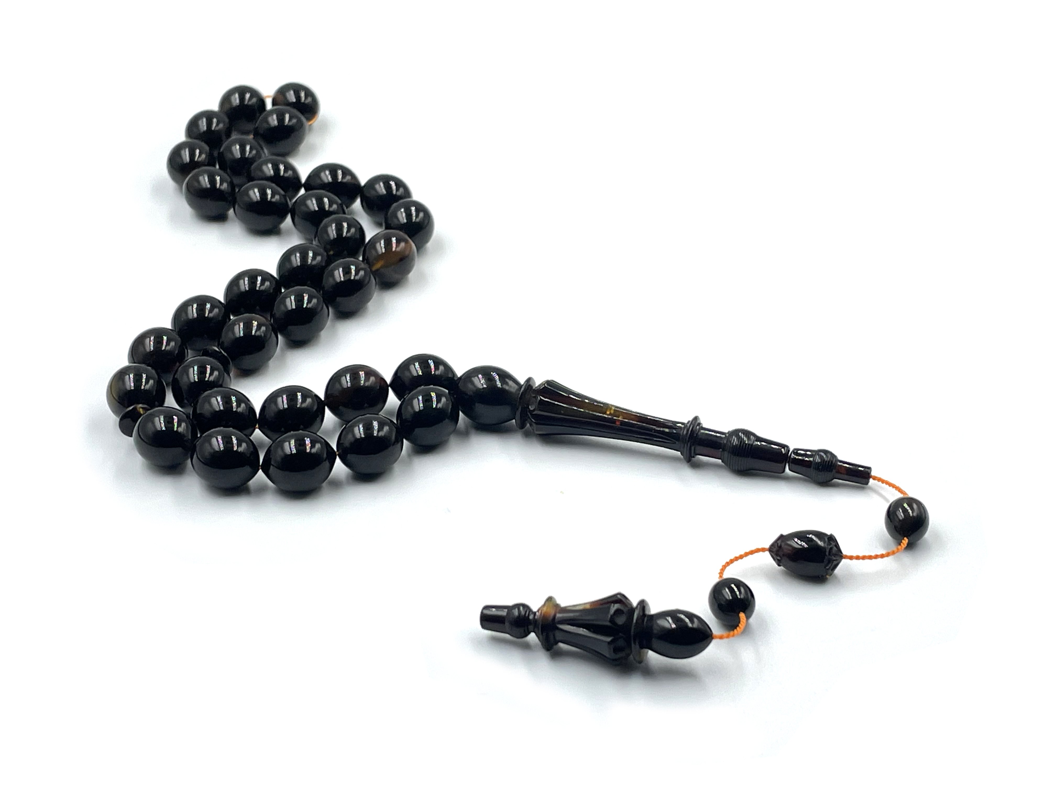 سبحة من ترسة سلحفاء طبيعي الحرفي ابراهيم باراغاليعدد الخرز 33الوزن التقريبي 41gالمقاس التقريبي 13.5x11mm