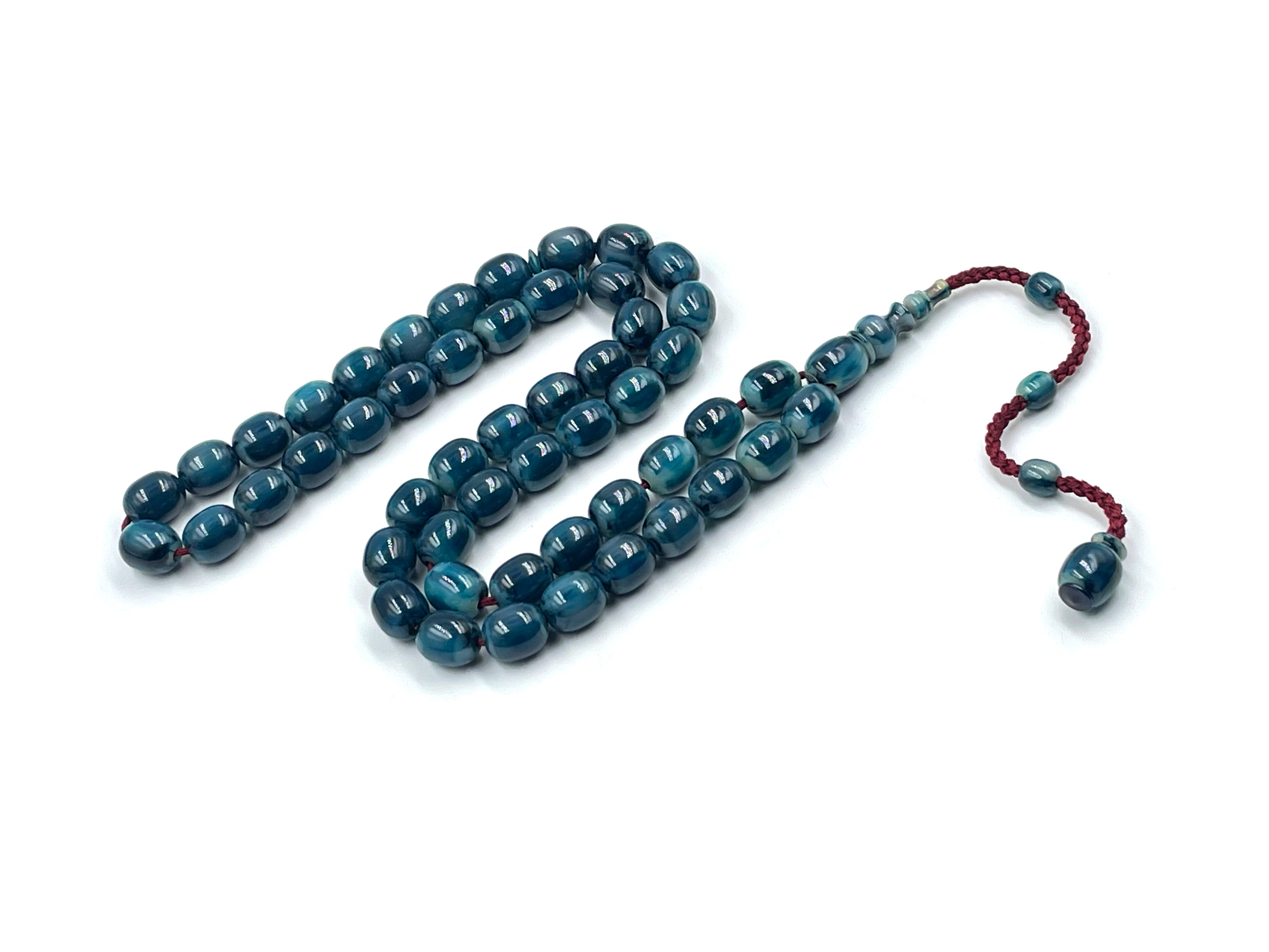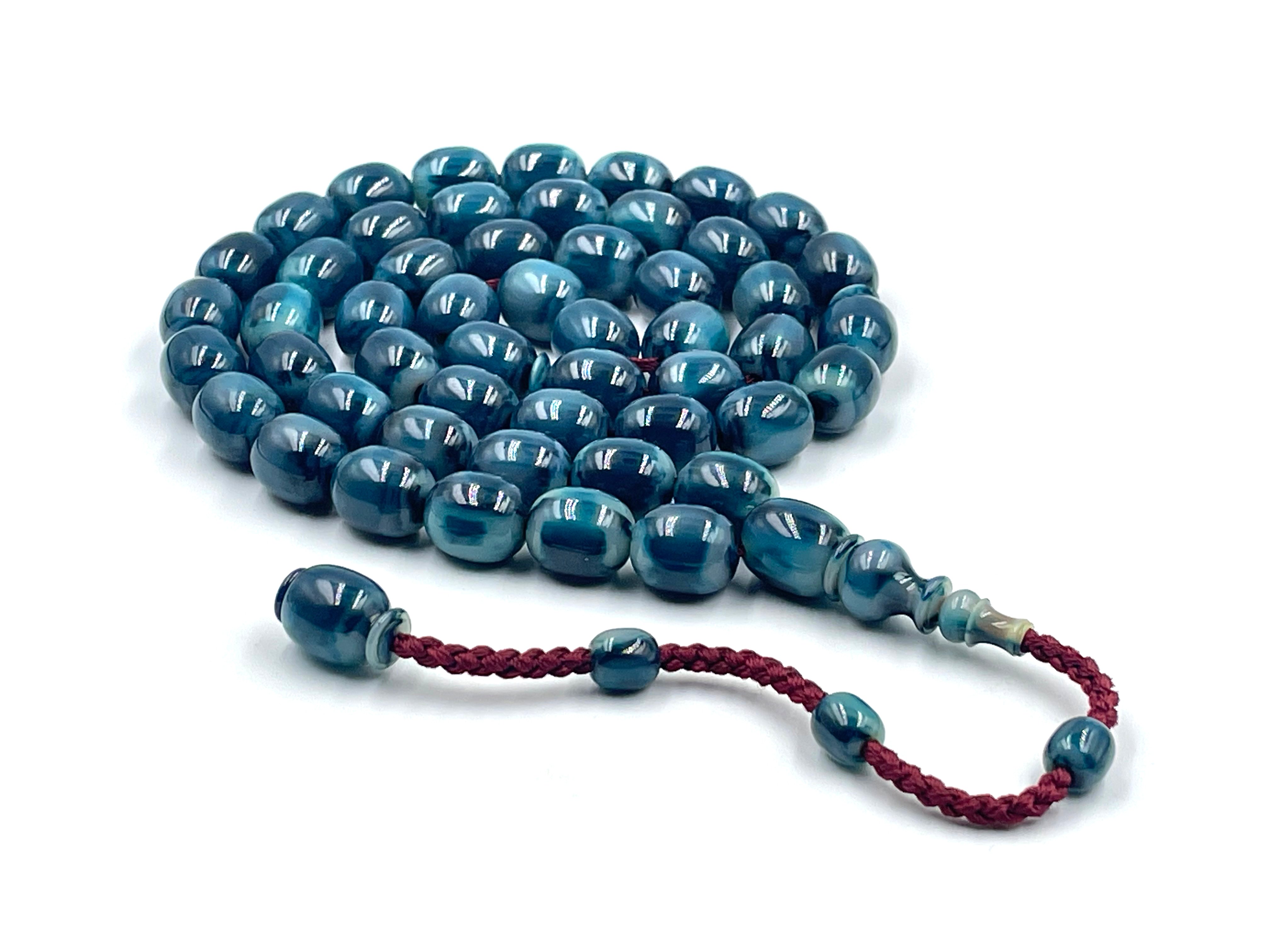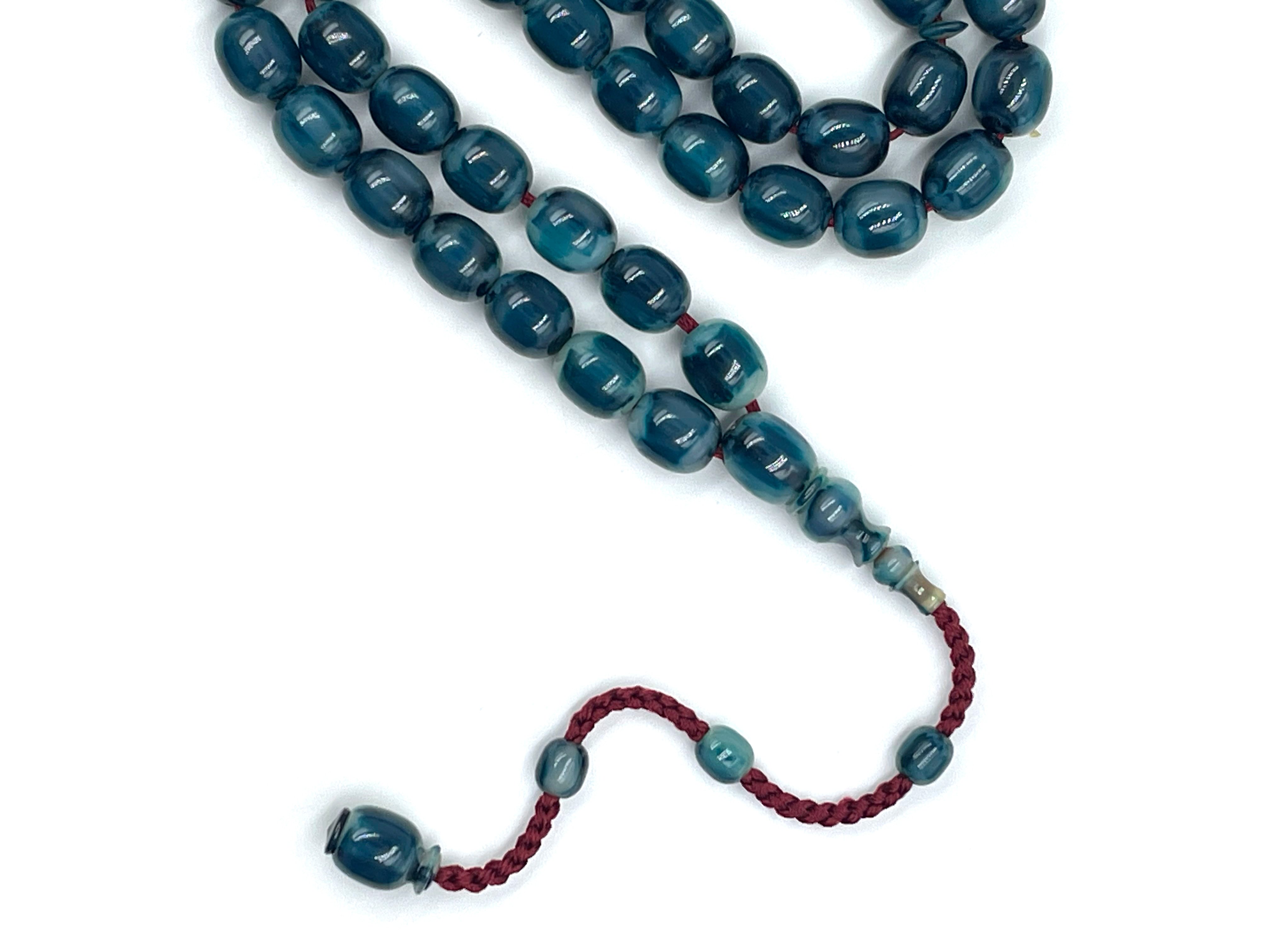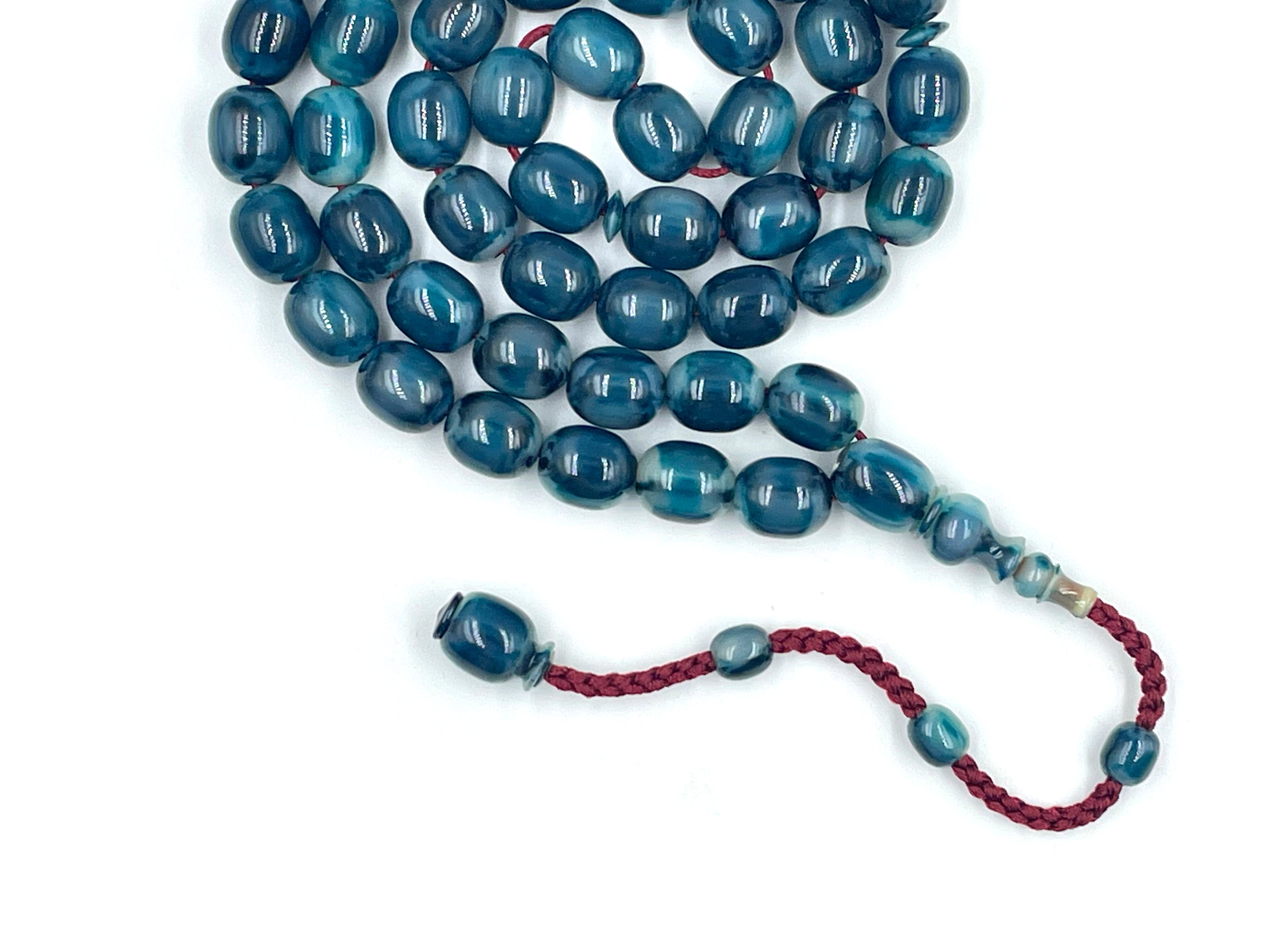 سبحة مقشورة من خرز عكروكي ازرق صب قديم
