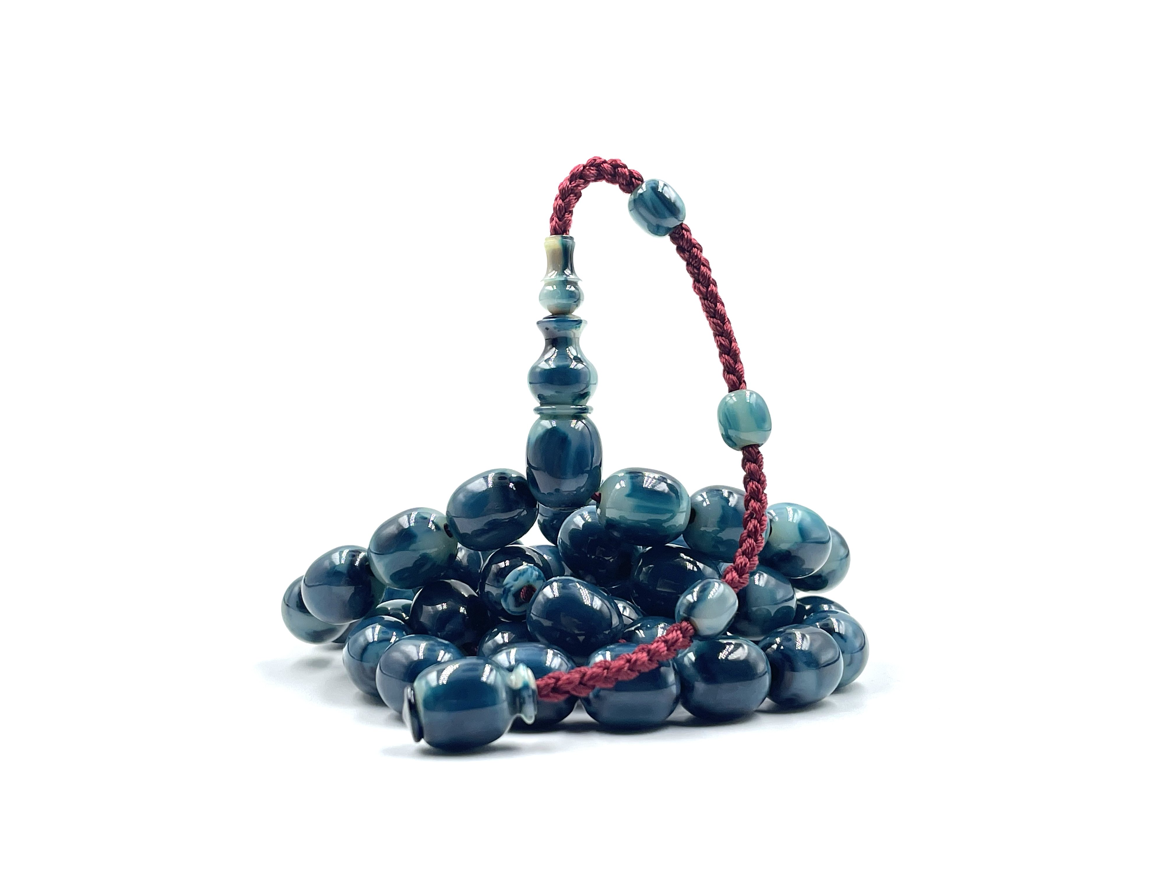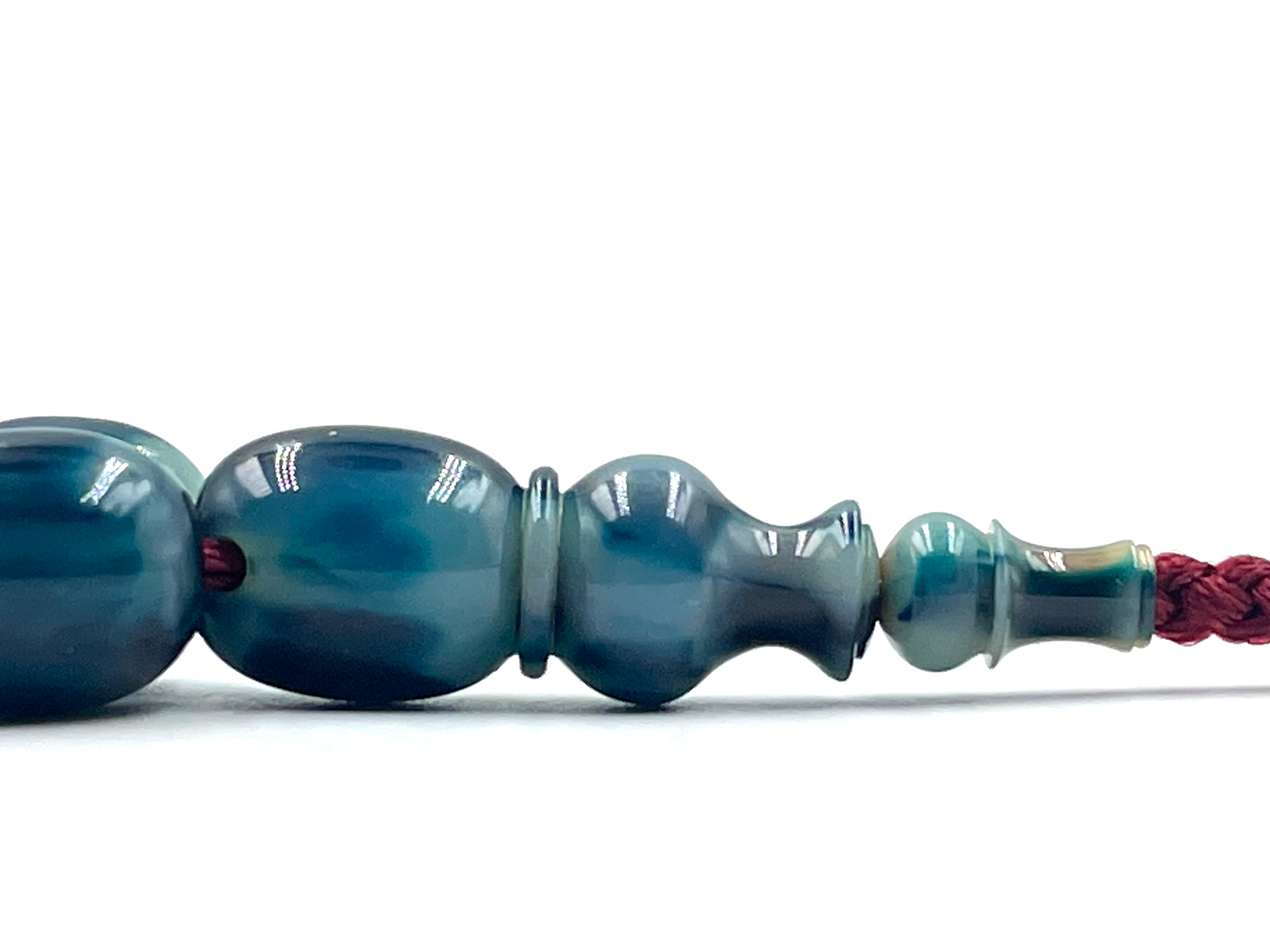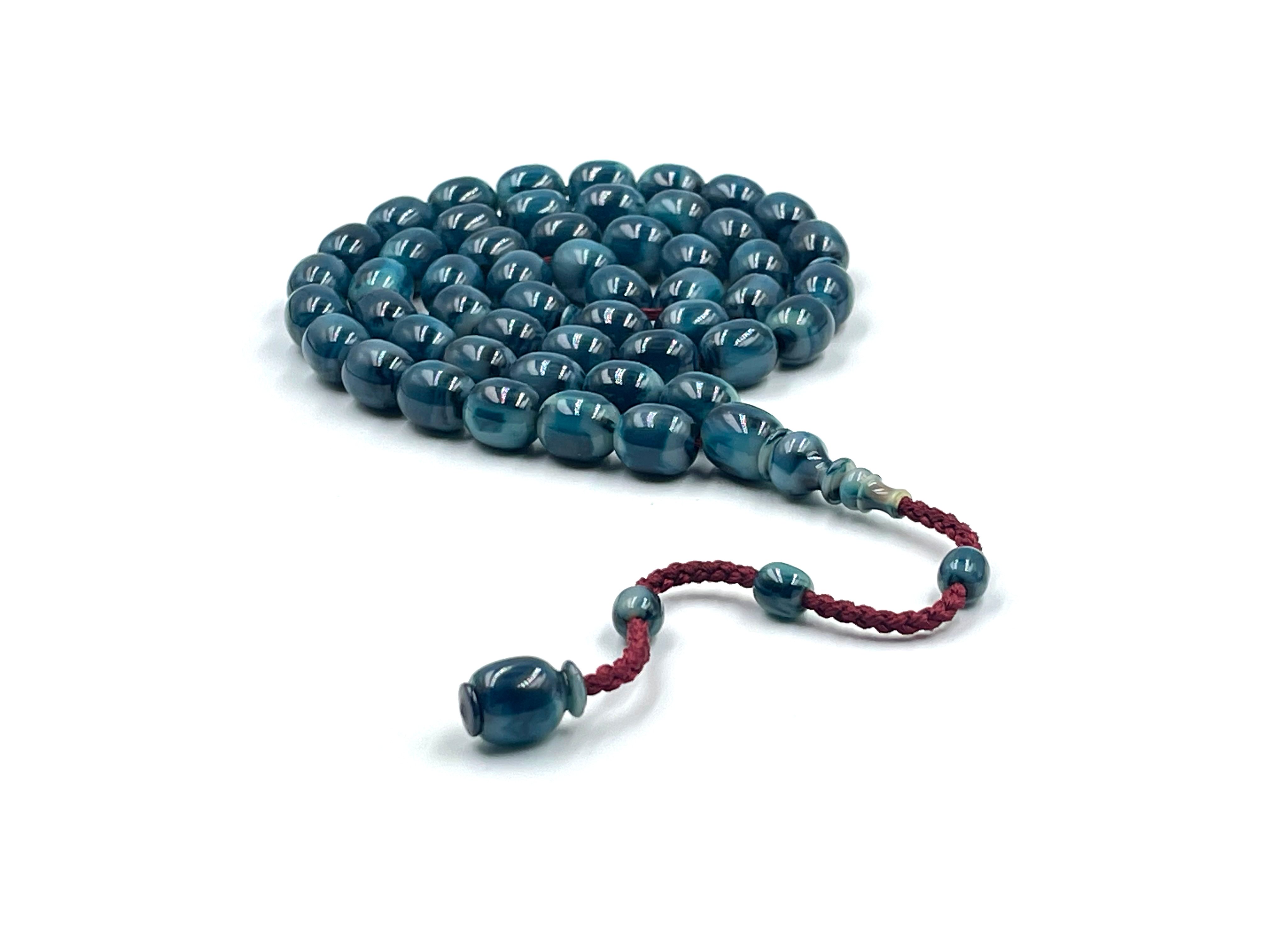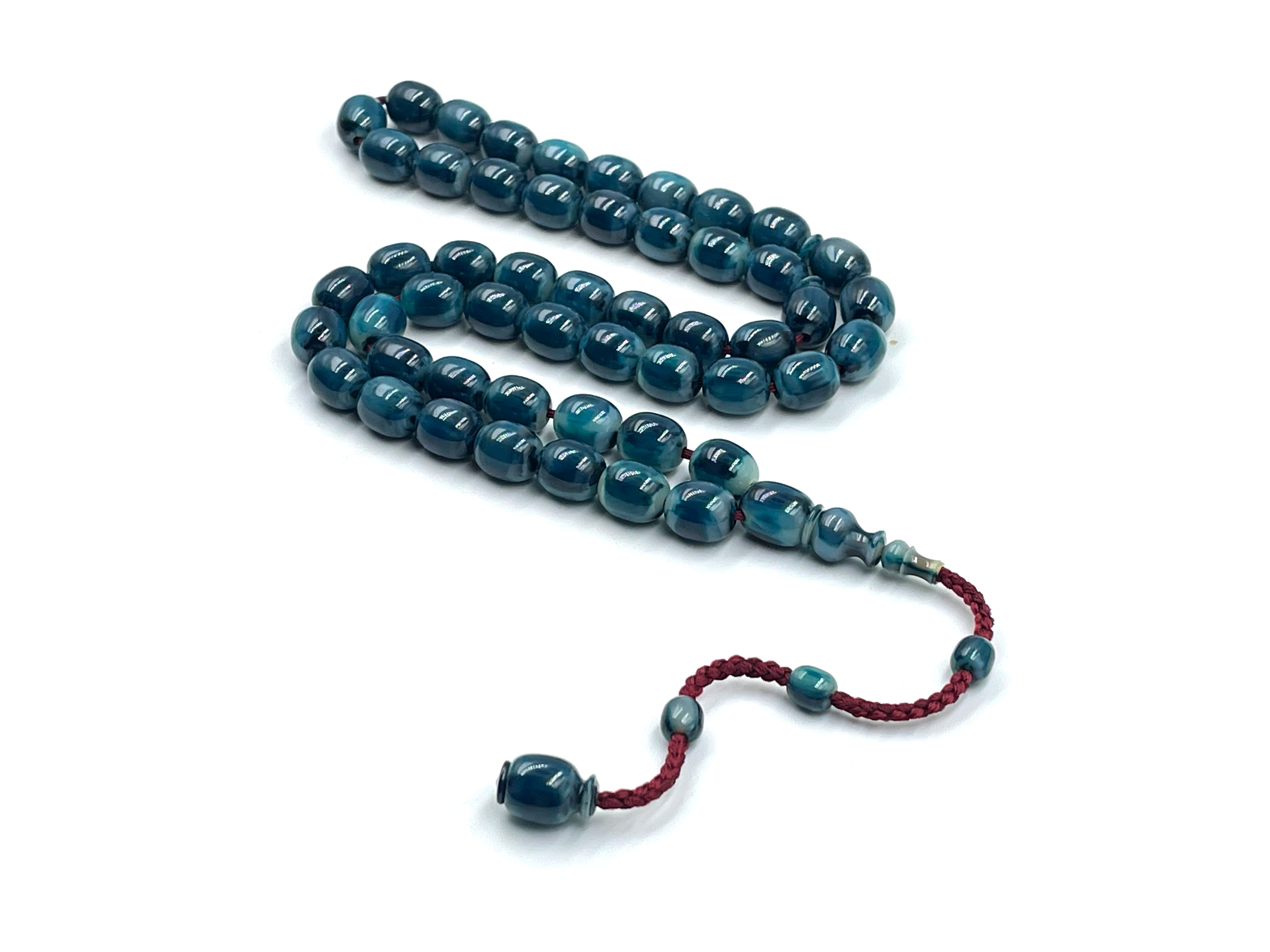 سبحة مقشورة من خرز عكروكي ازرق صب قديم