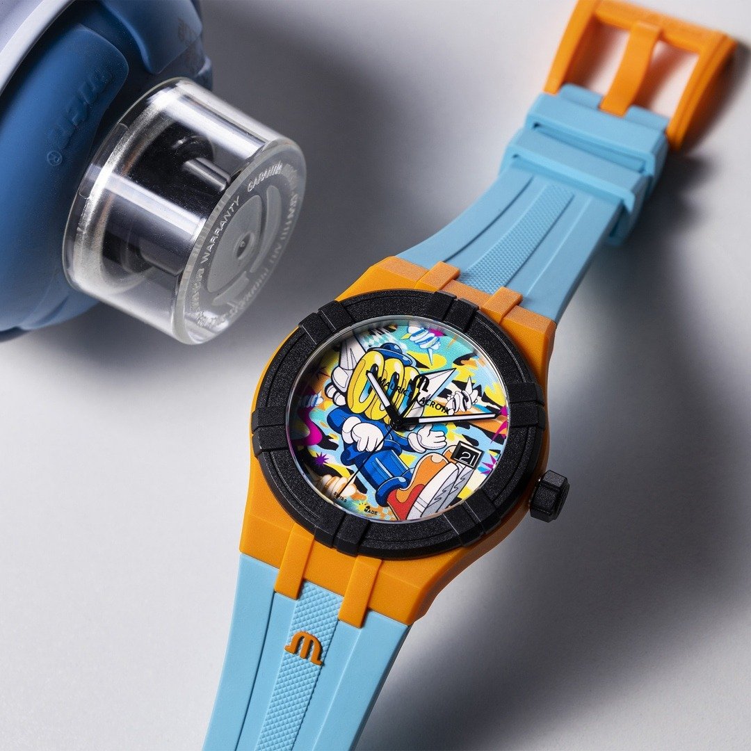 Case : Made from ocean-bound upcycled plastic & Strap : Light blue rubber strap with orange M-logo