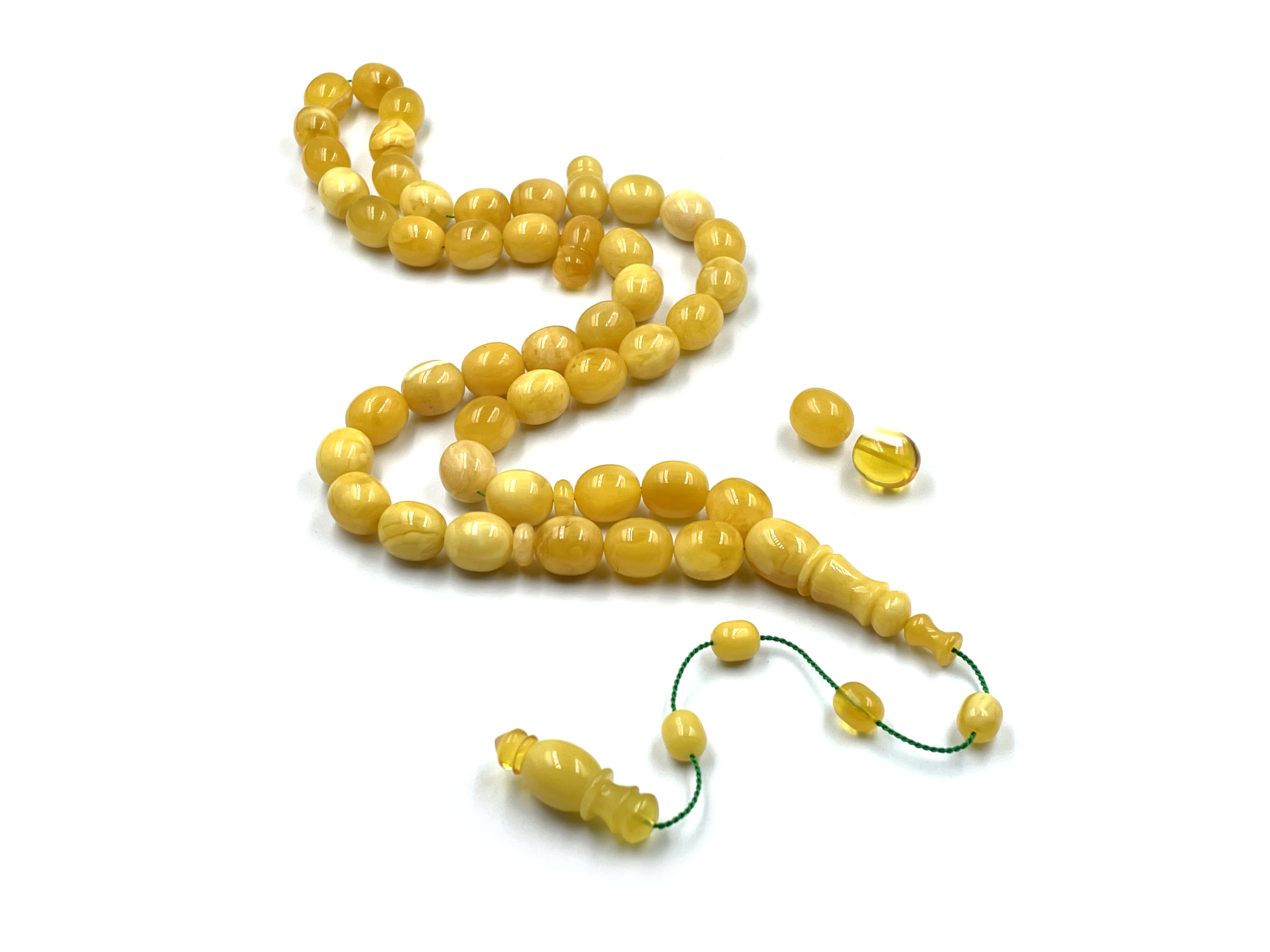 سبحة كهرمان من نقتسعدد الخرز 43الإضافات : عدد 2 خرزةالوزن التقريبي 80g شامل الاسبيراتالمقاس التقريبي 14.8x12.7 mm