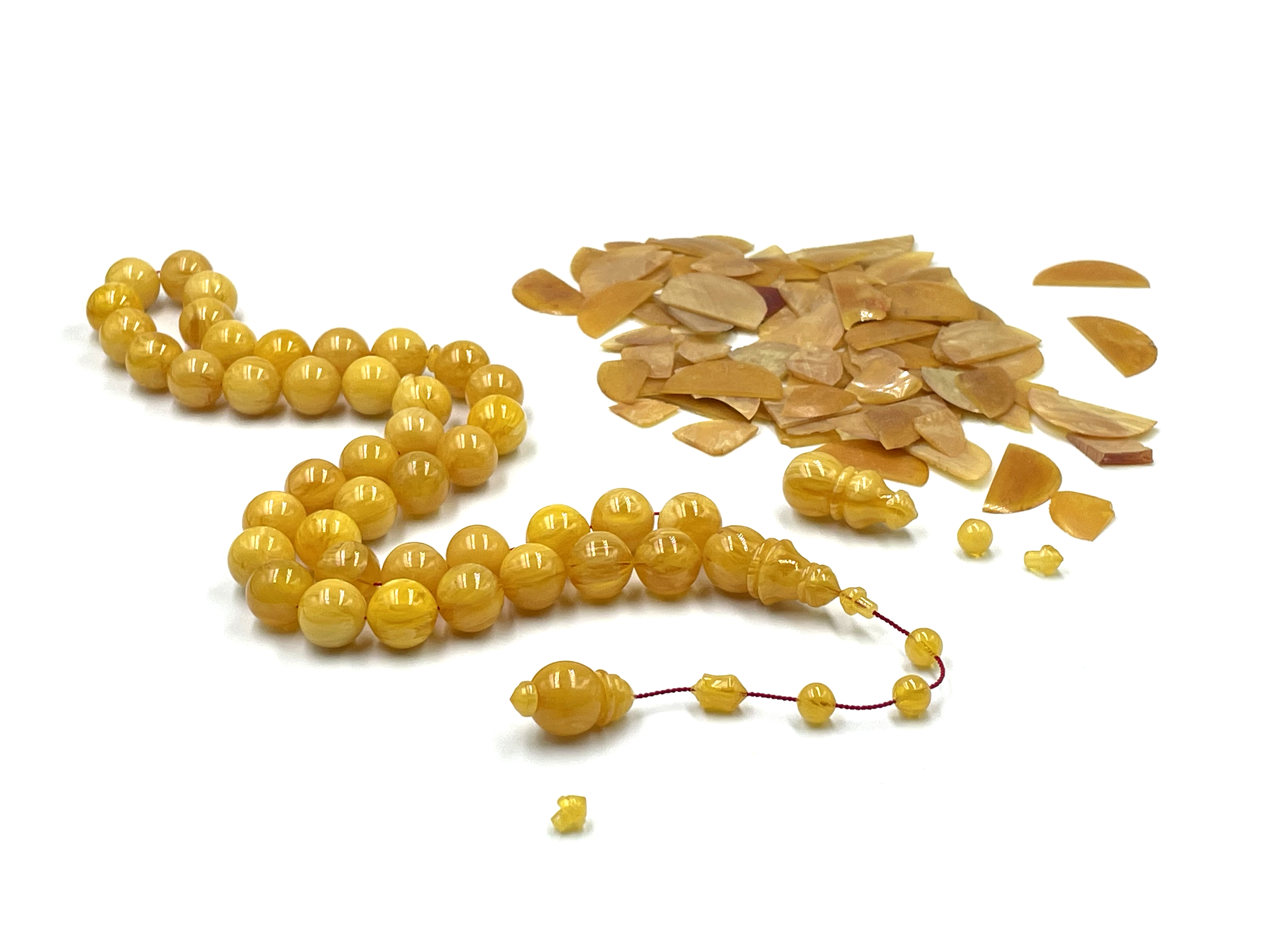 سبحة مستكة من مكعبات يمنية معرقة بشفافية لون واحد صب قديم