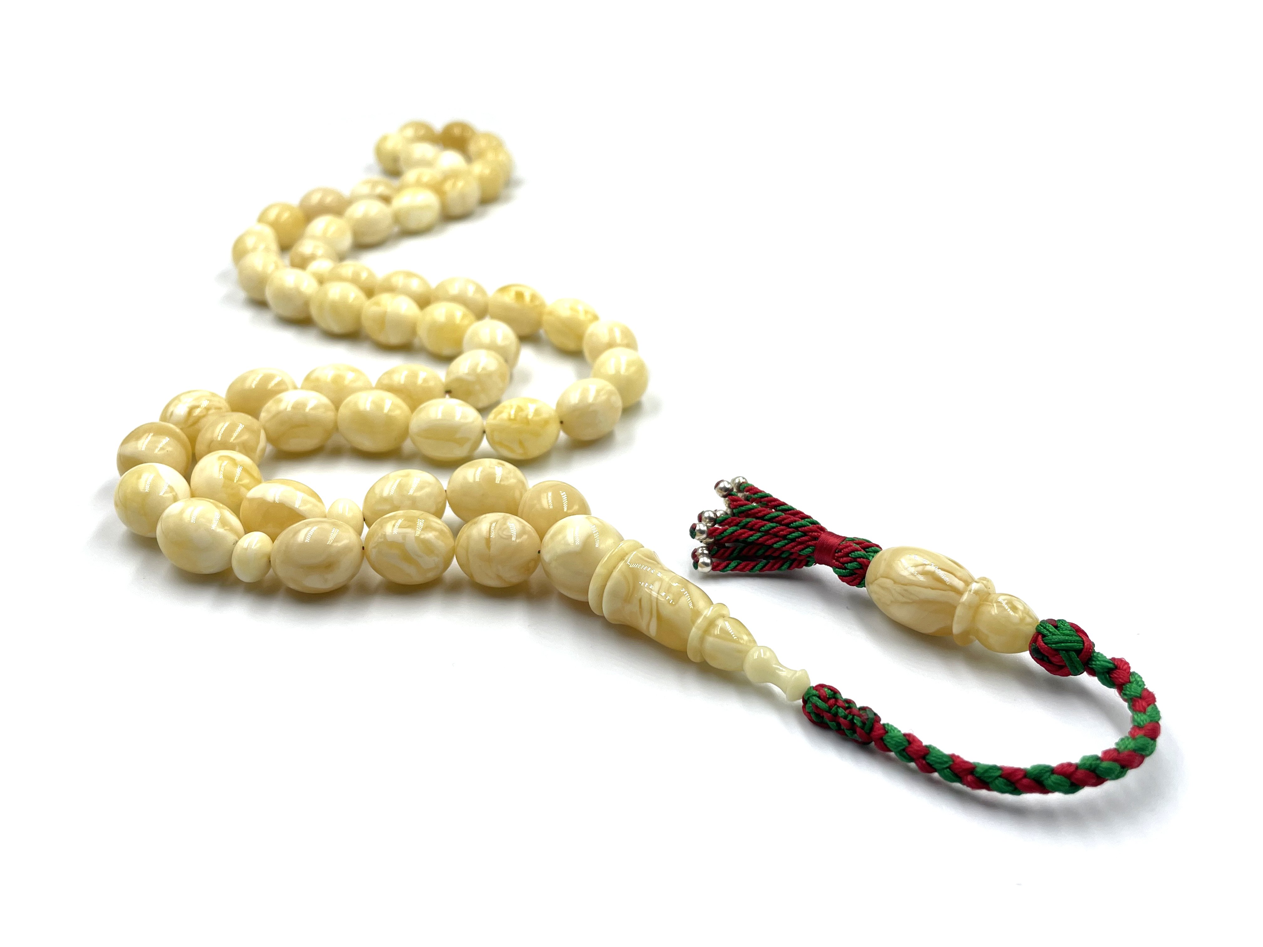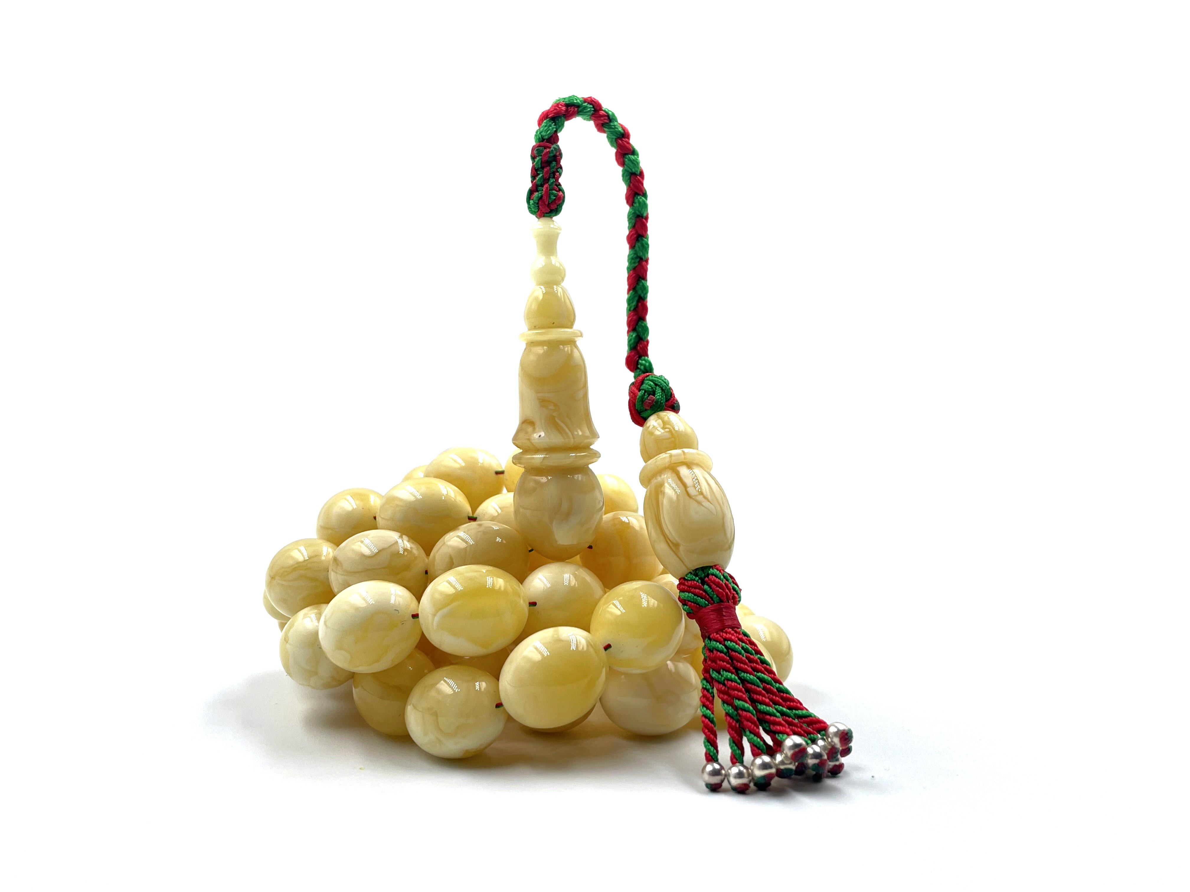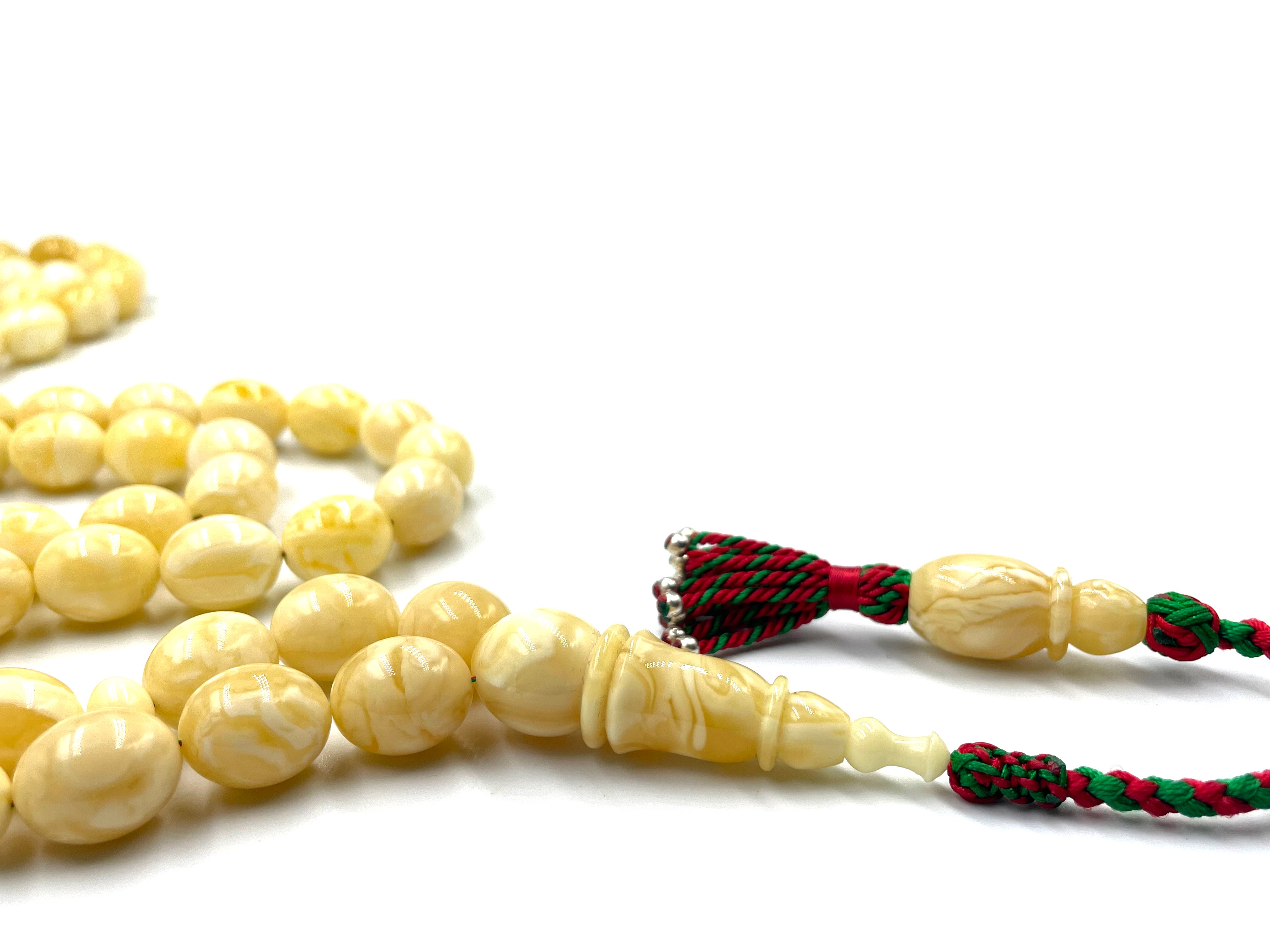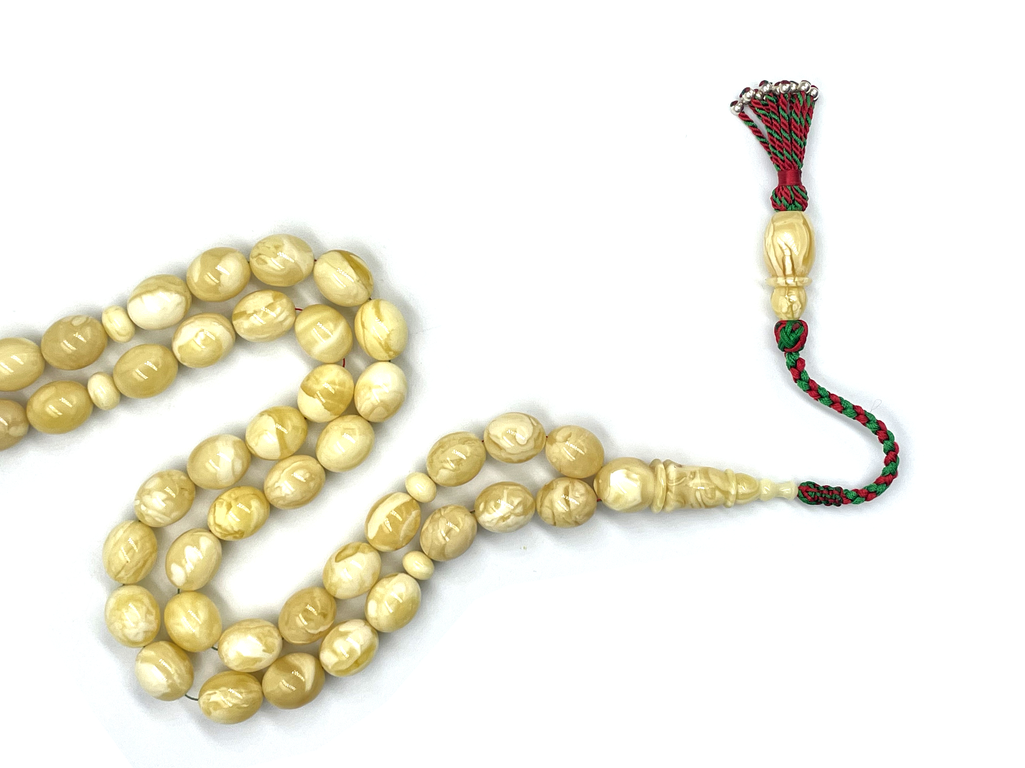 سبحة كهرمان فرز سوبر مبرقع بياض بيض حمام