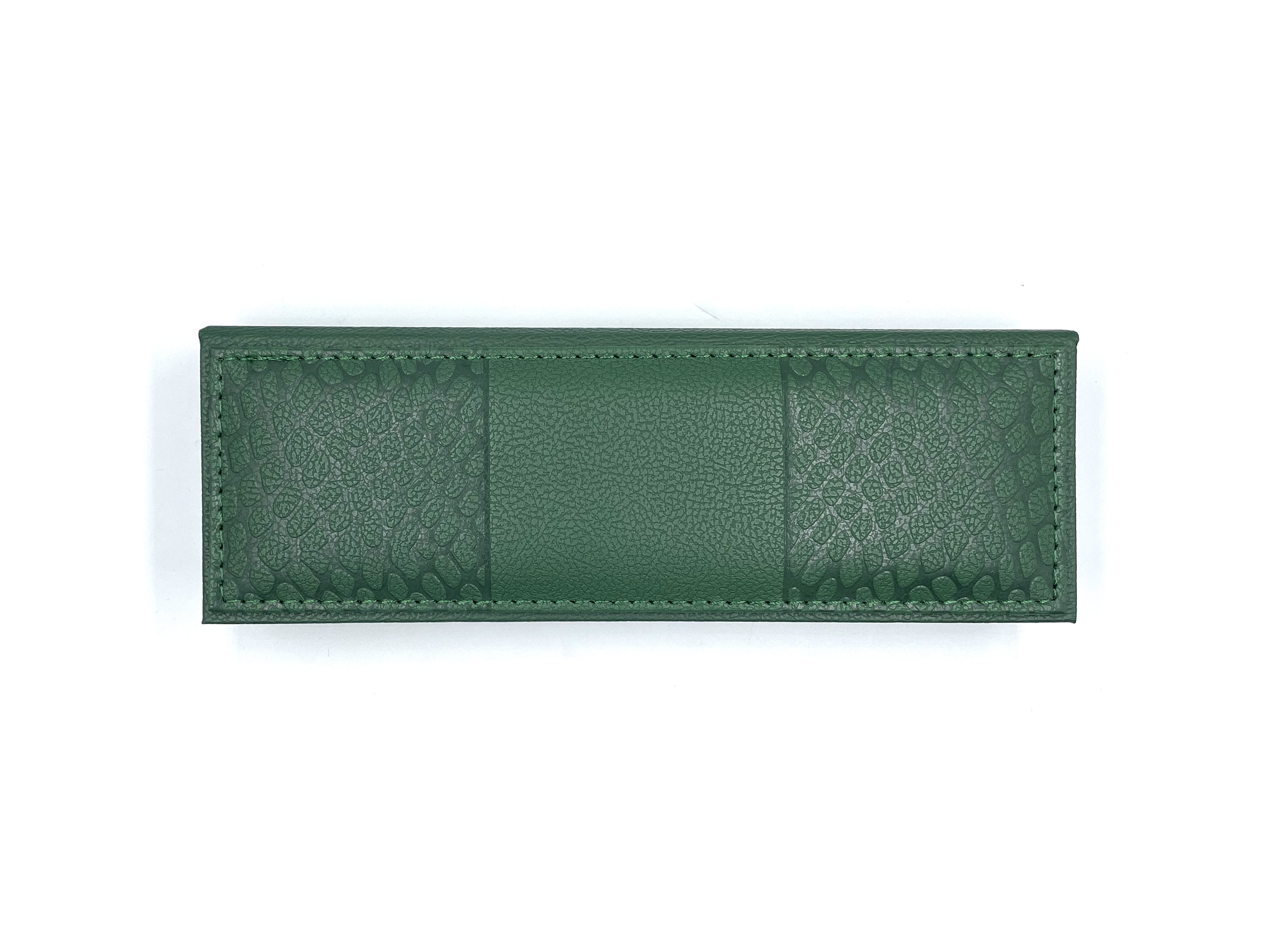 علب سبح جلد ايطالي اخضر مع داخلية مخمل اسود مع مطاط تثبيت