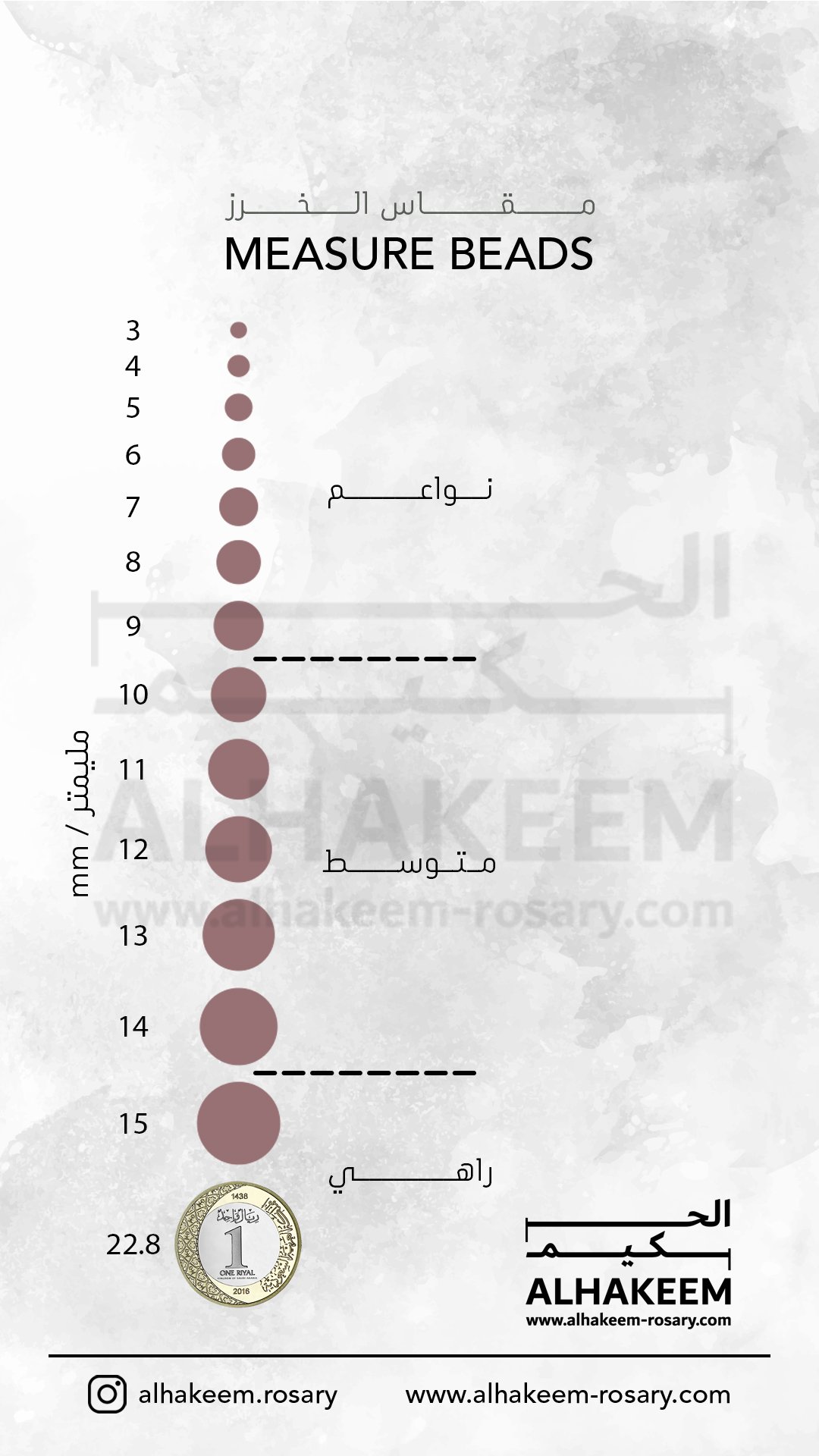مقاسات الخرز للسبحة بوحدة الملميتر