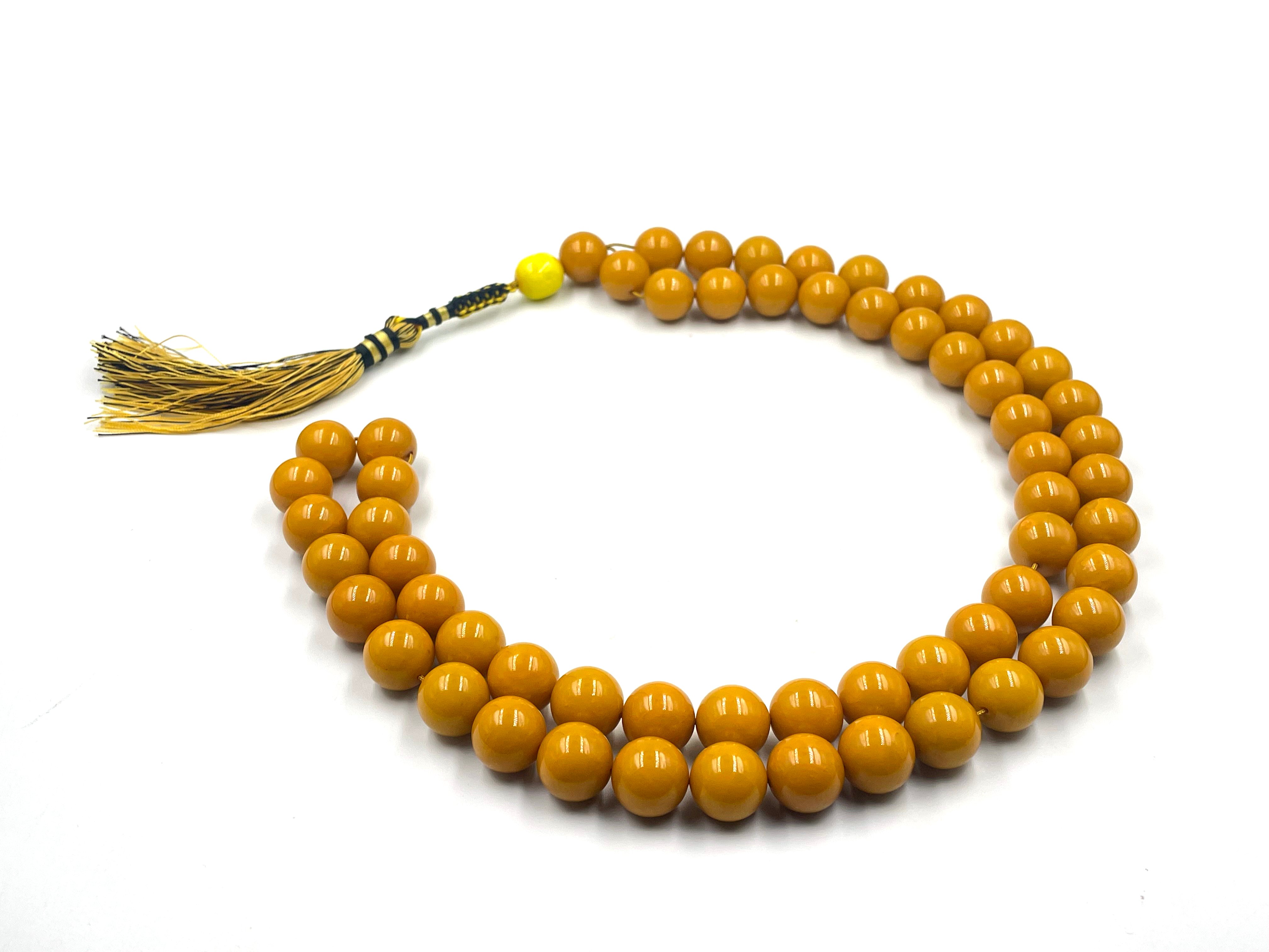 عقد اصفر بتعريق ابيض صب قديم مكشوفةالعدد : 60 خرزة + 1 خرزة مكشوفةالسماكة : 15 ملم تقريباًالوزن : 152 جرام تقريباً