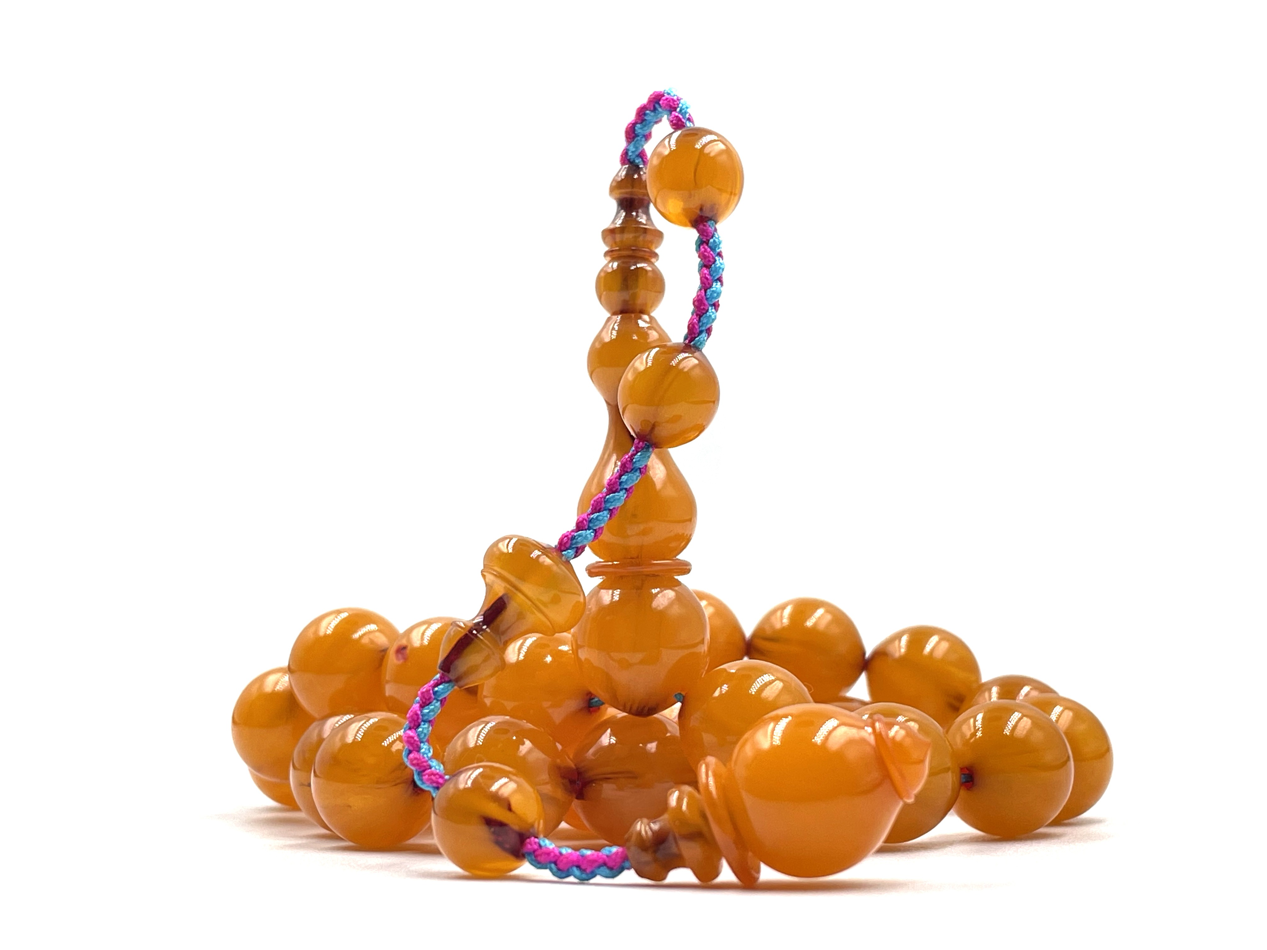 سبحة فاتوران مقشور من بلحات صب قديمالحرفي أحمد نقاشعدد الخرز 33الوزن التقريبي 55gالمقاس التقريبي 13.3x12.8 mm