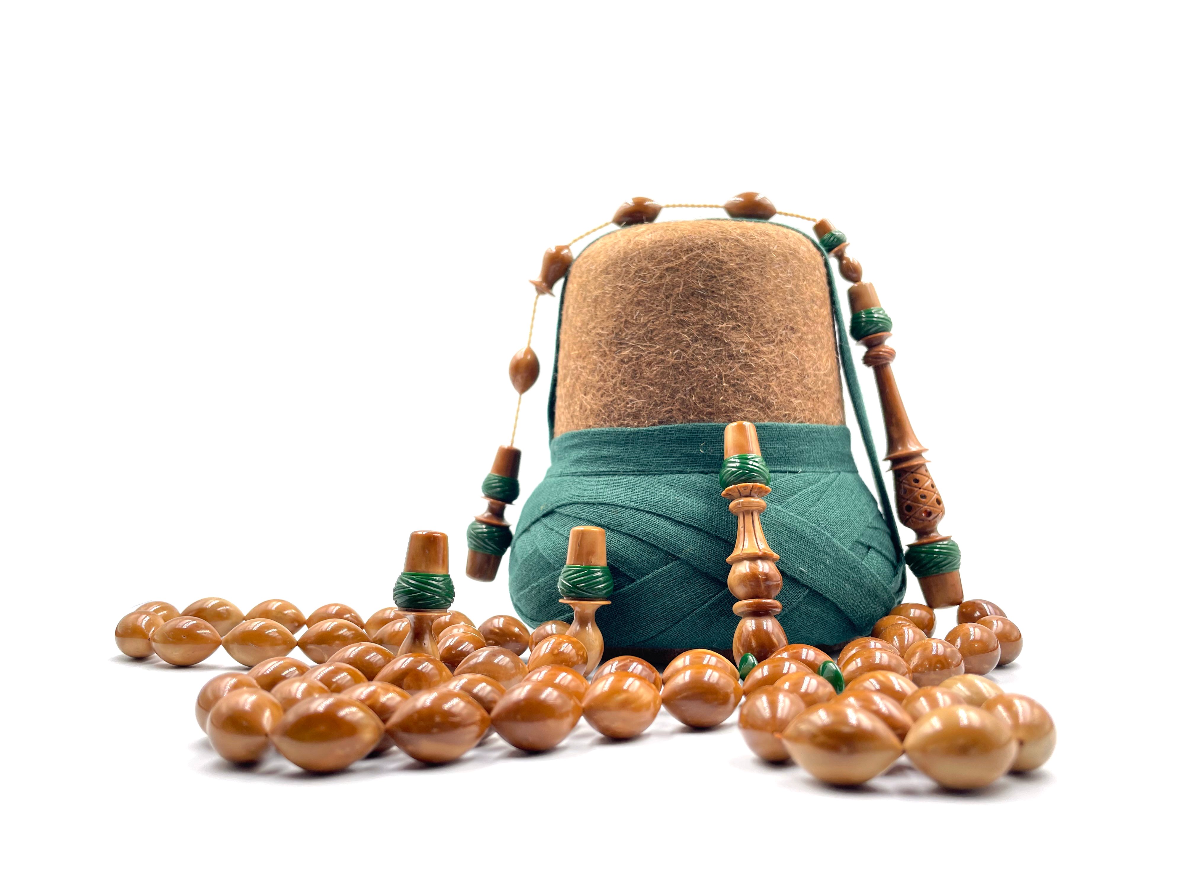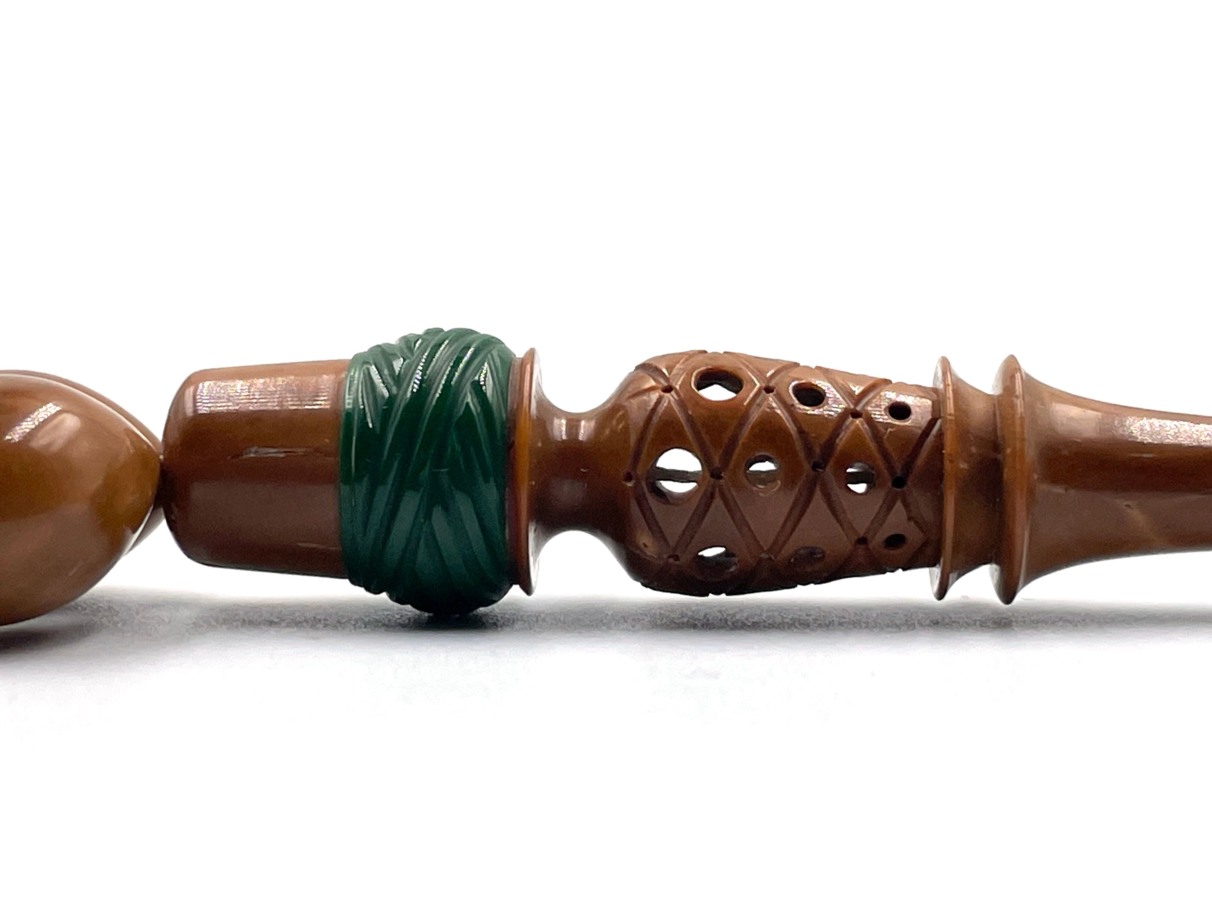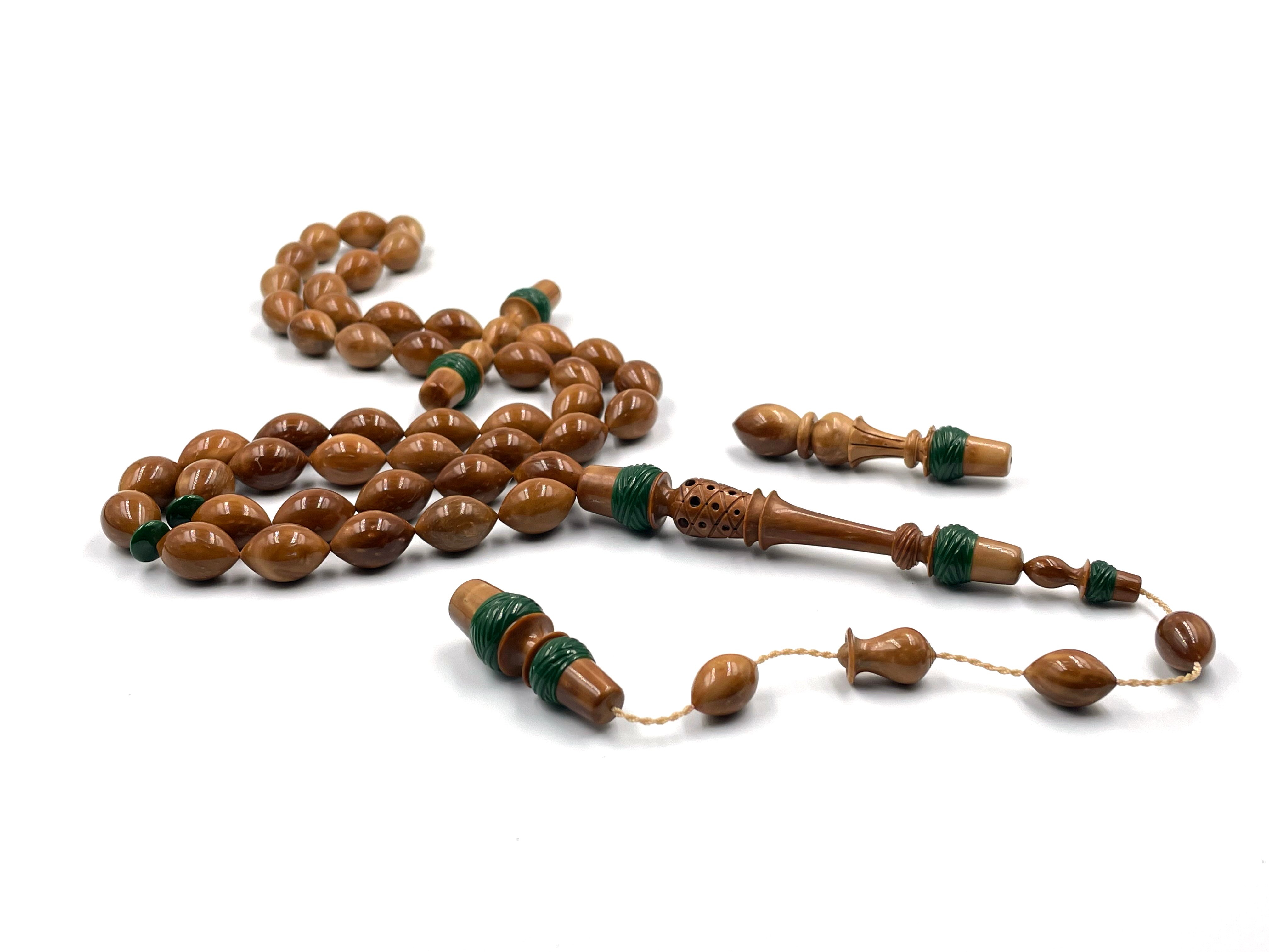 سبحة كوك منقوش ومطعمة بكتالين اخضر صب قديم