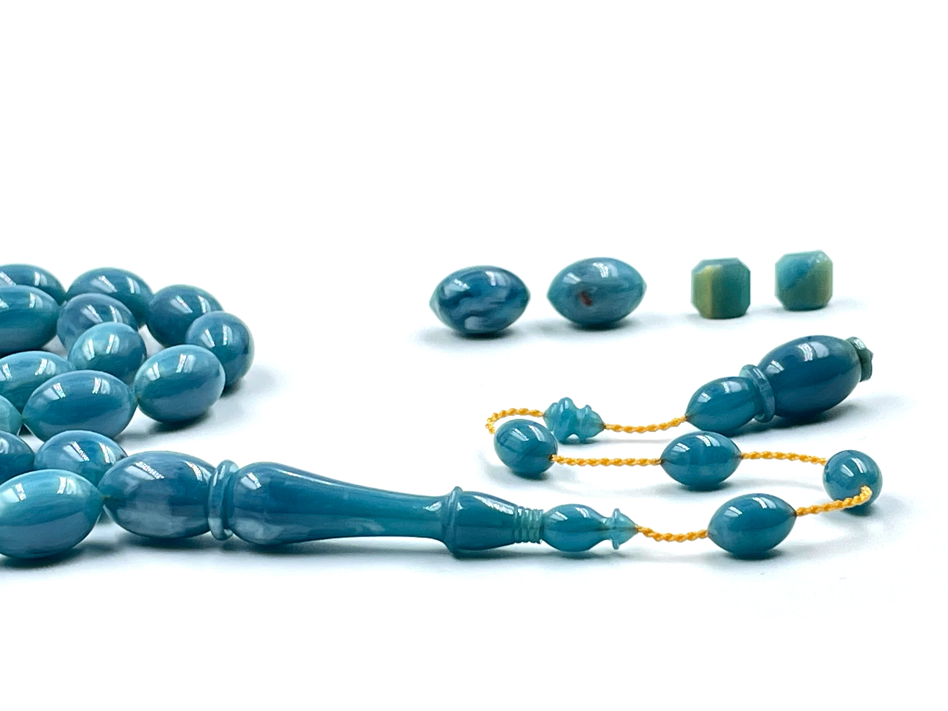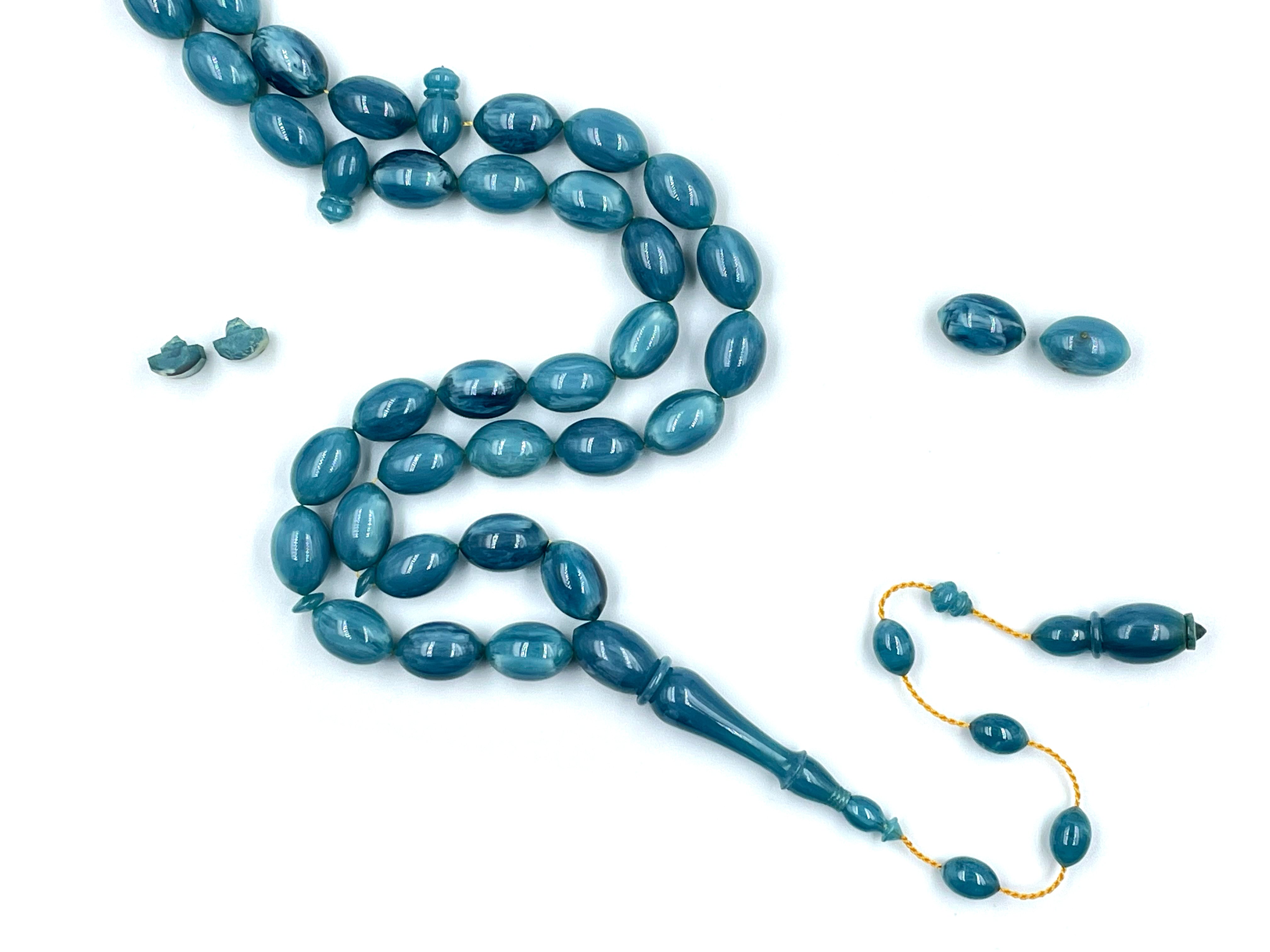 سبحة بكلايت من عصي 11ملم الماني ازرق بتعريق ابيض صب قديم