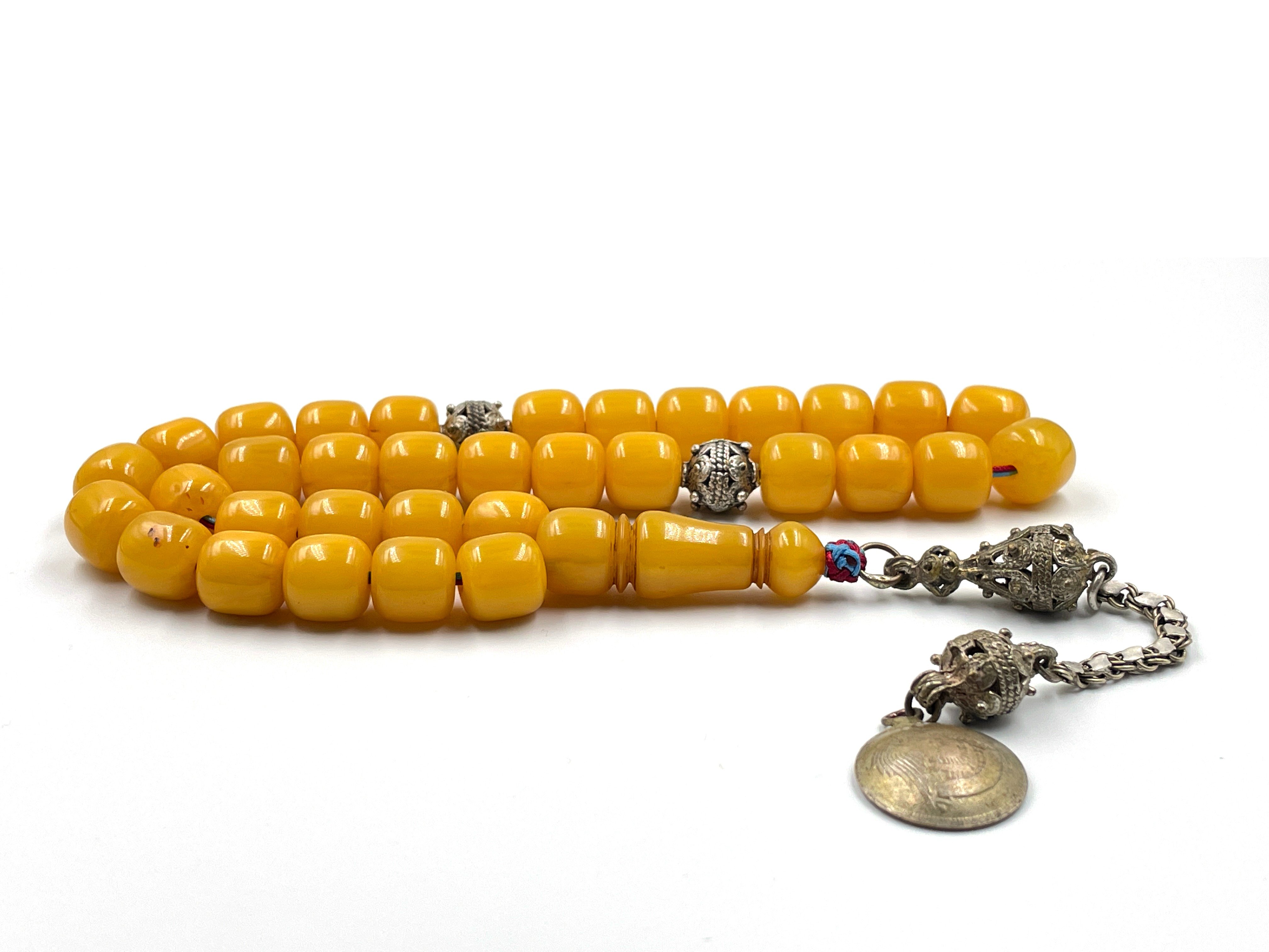 سبحة مستكة انتيك معرق مع شرابة فضة خفيف