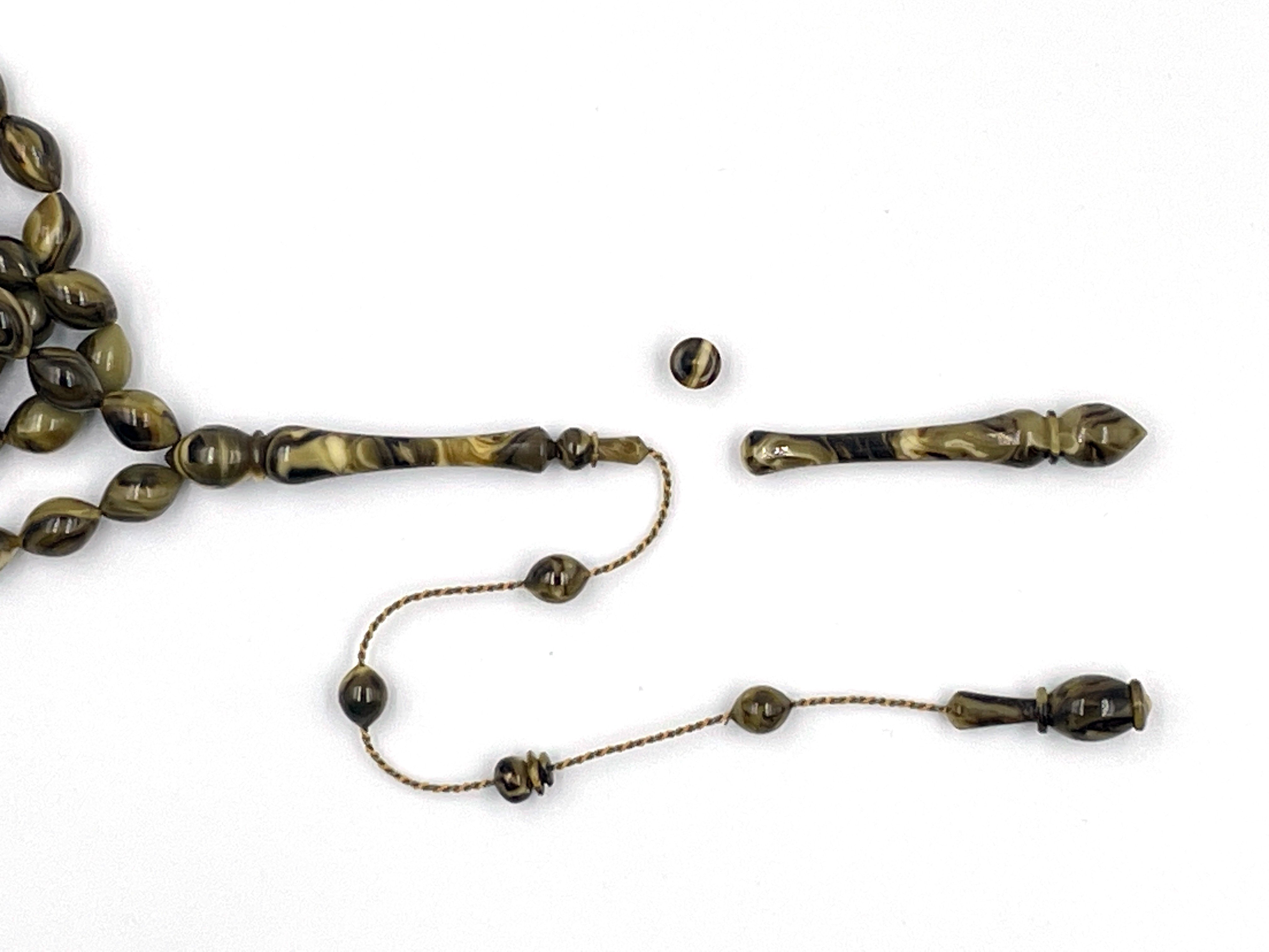 Bakelite rosary from old sab hyena bracelets (sorted dark frayed)