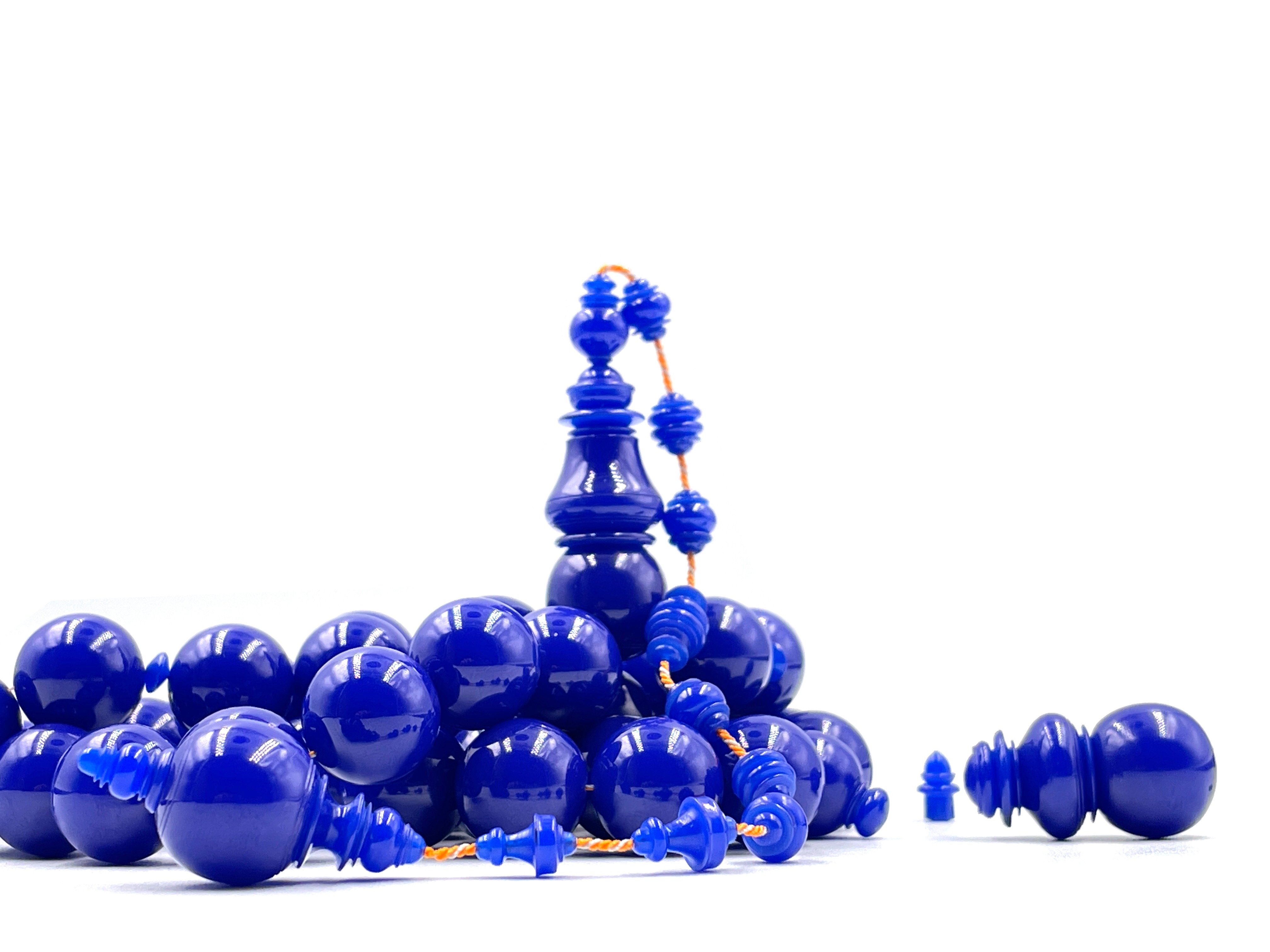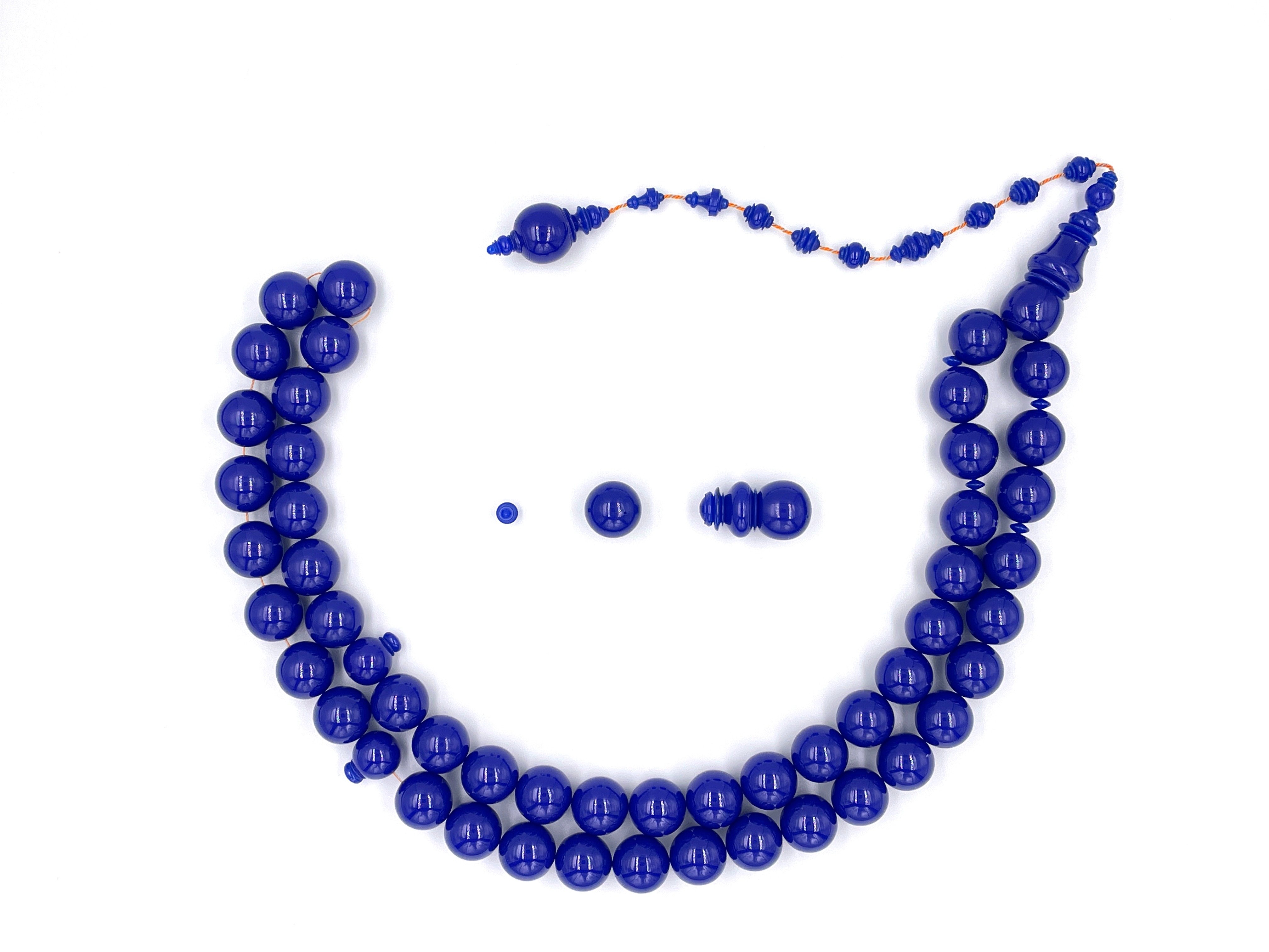 Rosary from blue bakelite sticks, 30 mm, old casting