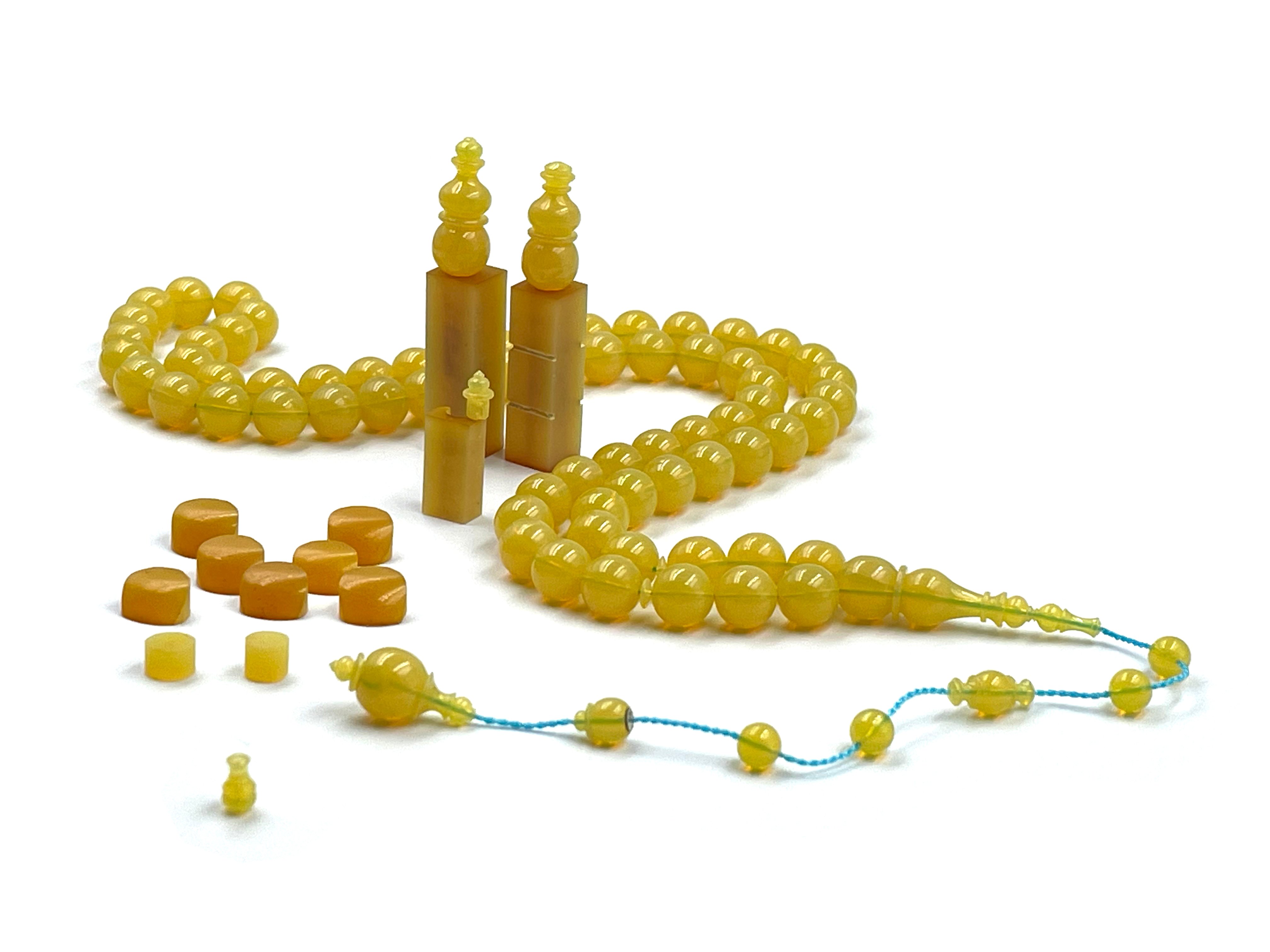 Rosary made of Yemeni cubes, translucently minted with a red reflection, ancient casting